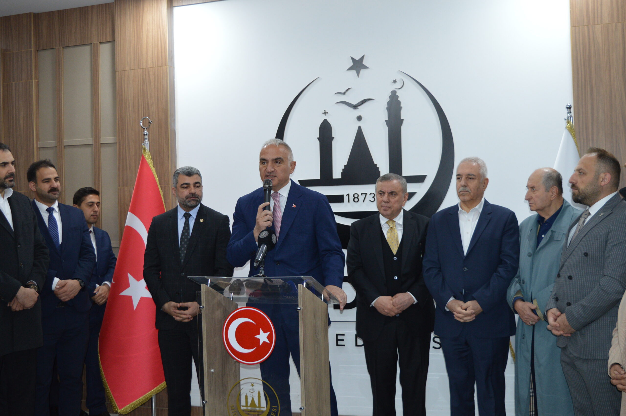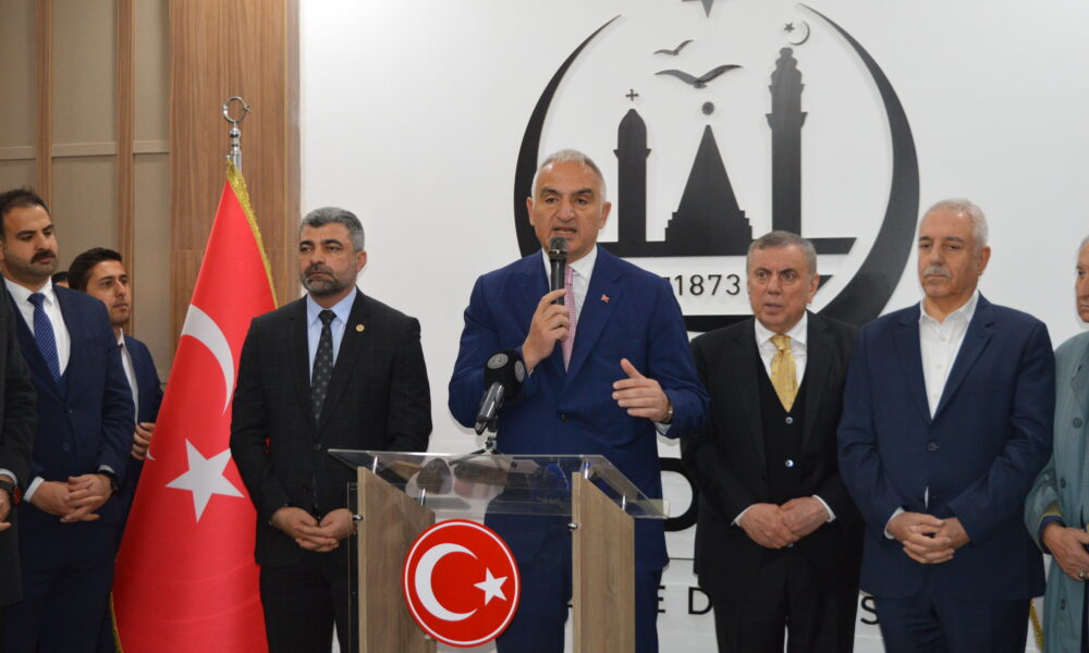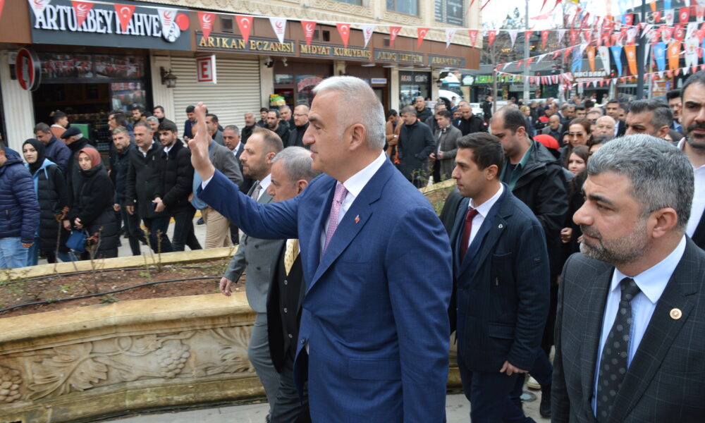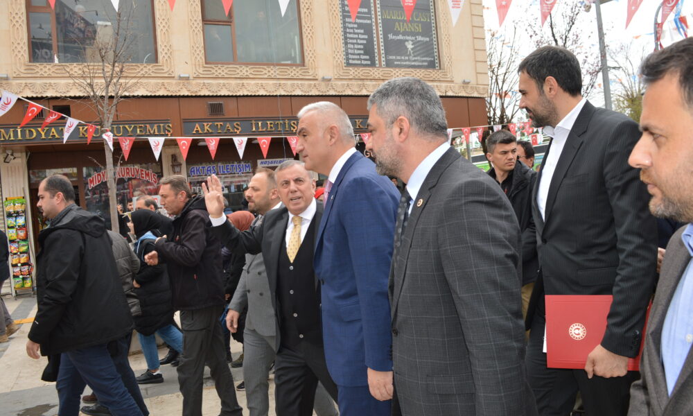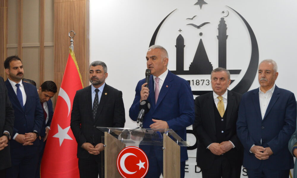KÜLTÜR ve Turizm Bakanı Mehmet Nuri Ersoy, “2019dan itibaren artık Türkiye rekorlar kıran bir ülke oldu. İlk etapta 7nci, 6ncı, sonrasında ise dünyada en fazla ziyaretçi alan 4üncü sıraya kadar geldi. Ama bizim hedefimiz 4üncü değil, 2028e kadar hedefimiz 3üncü sıraya gelmek. Yani dünyada en çok ziyaretçi alan üçüncü ülke olmak istiyoruz. Bu sebeple 81 vilayetimizde artık turizmi canlandırmamız gerekiyor” dedi.Kültür ve Turizm Bakanı Mehmet Nuri Ersoy, temaslarda bulunmak üzere Mardin’e geldi. Bakan Ersoy, AK Parti Milletvekili Faruk Kılıç ile Midyat ilçesinde Giyimciler ve Kuyumcular Çarşısı Cephe Yenileme ve Meydan Düzenleme Projesi kapsamında tamamlanan çarşı ve meydanı gezdi, esnaf ve vatandaşlarla görüştü. Telkari Müzesi, Midyat Millet Bahçesi Millet Kütüphanesi, Midyat Bebek ve Çocuk Kütüphanesi ile restorasyonu tamamlanan Binbaşı Hacı Abdurrahman Efendi Konağında incelemelerde bulunan Ersoy, çalışmalar hakkında Midyat Belediye Başkanı Veysi Şahinden bilgi aldı. Midyat Belediyesi Kültür ve Kongre Merkezini de gezen Ersoy, burada yaptığı açıklamada, turizmde 2018 itibarıyla bir paradigma değişimine gittiklerini, turizmi 12 aya ve 81 ile yaymak istediklerini söyledi. Birçok yeniliği de turizm sektörünün içine kattıklarını ifade eden Bakan Ersoy, “Bunu belgelendirmeyle destekledik. Artık aşamalı bir şekilde bütün konaklama tesisleri Bakanlığımızdan belgeli hale geldiler. Sürdürülebilirlik sertifikasyon programında Avrupada öncü durumdayız. Geriden gelmemize rağmen dünyada en iyi sertifikasyon programına sahibiz. Bütün bu turizmin altyapı çalışmalarını tamamladıktan sonra da rakamlara yansımaya başladı” diye konuştu.’81 VİLAYETİMİZDE TURİZMİ CANLANDIRMAMIZ GEREKİYOR’Bakan Ersoy, Türkiye’nin en fazla ziyaret alan 4’üncü sıraya kadar yükseldiğini belirterek, “2019dan itibaren artık Türkiye rekorlar kıran bir ülke oldu. İlk etapta 7nci, 6ncı, sonrasında ise 4üncü sıraya kadar yani dünyada en fazla ziyaretçi alan 4üncü sıraya kadar geldi. Ama bizim hedefimiz 4üncü değil, 2028e kadar hedefimiz 3üncü sıraya gelmek. Yani dünyada en çok ziyaretçi alan üçüncü ülke olmak istiyoruz. Bu sebeple 81 vilayetimizde artık turizmi canlandırmamız gerekiyor. Böyle bir dönemde Midyatımız bütün farklılıklarıyla beraber barış ve huzur içerisinde yaşayan bir ilçedir. Bu nedenle biz Türkiye ve dünya olarak şükranlarımızı sunuyoruz. Midyatımız gastronomisiyle, arkeolojik değerleriyle, kültürel zenginlikleriyle farklı inançların beraber yaşadığı çok önemli bir turizm lobisi ve destinasyonudur” dedi.‘MARDİN’E DAHA ÇOK GELECEĞİZ’Turizm sektörünü birinci sıraya getirmeyi amaçladıklarını aktaran Ersoy, şöyle konuştu:“Amacımız, Mardinimizin, Midyatımızın uzun yıllar sonra tekrar elde ettiği, huzur ve barış ortamını korumak. Onun için en önemli kaynağımız, turizm. Turizm ile birlikte yatırım ve istihdam geliyor. Mardin bizim için her anlamda önemli, yatırımlarımıza devam ediyoruz. Geçen yıl yaptığımız kütüphane yatırımları var. Mardinde kütüphane olmayan ilçe kalmadı. Son bir dokunuşumuz daha var, o da Mardin İl Kütüphanesi, 8 bin 500 metrekarelik bir alanda çok büyük bir kütüphanenin ihalesini mayıs ayında yapıyoruz. Mardine ilk gelişim değil, daha çok geleceğiz ve yatırımlarımıza devam edeceğiz.”