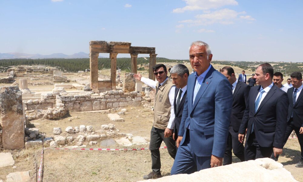 Bakan Ersoy bir sonraki ziyaretini Ulubey ilçesindeki Blaundus Antik Kentine yaptı. Burada Müze Müdürü Şerif Söylerden kazı çalışmaları hakkında bilgi alan Bakan Ersoy, inceleme yaptı.