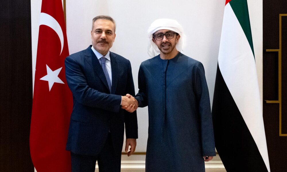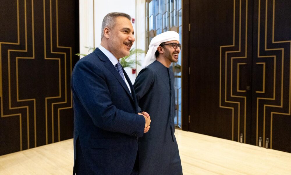 Dışişleri Bakanı Hakan Fidan, Abu Dabi’de, Birleşik Arap Emirlikleri Dışişleri ve Uluslararası İşbirliği Bakanı Şeyh Abdullah bin Zayid Al Nahyan ile görüştü. Görüşmeden fotoğraf paylaşıldı.