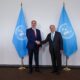 Dışişleri Bakanı Hakan Fidan, Kıbrıs Gayrıresmi Toplantısı vesilesiyle New York’taki Birleşmiş Milletler (BM) Genel Merkezi’nde düzenlenen resmi akşam yemeğine katıldı. Bakan Fidan, BM Genel Sekreteri Antonio Guterres tarafından karşılandı.