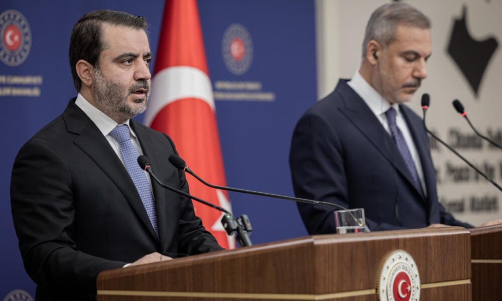 Dışişleri Bakanı Hakan Fidan, Türkiye’ye çalışma ziyareti gerçekleştiren Suriye Dışişleri Bakanı Esad Hasan Şeybani ile Bakanlıkta bir araya geldi. Bakanlar ikili görüşmenin ardından ortak basın açıklaması yaptı. Bakan Fidan, Suriye hükümetinin bölgesel ve uluslararası alandaki angajmanı her geçen gün güçlenmekte olduğunu belirterek, “Bunun en son örneği Sayın Şara’nın Birleşmiş Milletler Genel Kuruluna yaptığı hitaptı. Bu da ayrıca tarihi bir gelişmeydi. Yakalanan bu ivmeden Suriye halkının yaşam koşullarının iyileştirilmesi yönünde istifade edilmesi önem teşkil etmektedir. Türkiye olarak bu hususta bundan sonra da elimizden gelen gayreti göstermeye devam edeceğiz. Uluslararası toplum da Suriye halkına karşı üzerine düşen sorumluluğu yerine getirmelidir. Nasıl ki Suriye bölgesine ve uluslararası topluma yönelik kendisinden talep edilen ödevleri yerine getiriyor, uluslararası toplum ve bölge ülkeleri de Suriyeye yönelik ödevlerini yerine getirmelidir. Suriyeye ve Suriyenin temsilcilerine yönelik tüm yaptırımlar bir an önce kaldırılmalıdır. Bu yönde atılacak adımlar Suriyenin istikrarı ve kalkınmasına hizmet ederek ülkedeki güvenlik durumunun iyileştirmesine de katkı sağlayacaktır” ifadelerini kullandı.