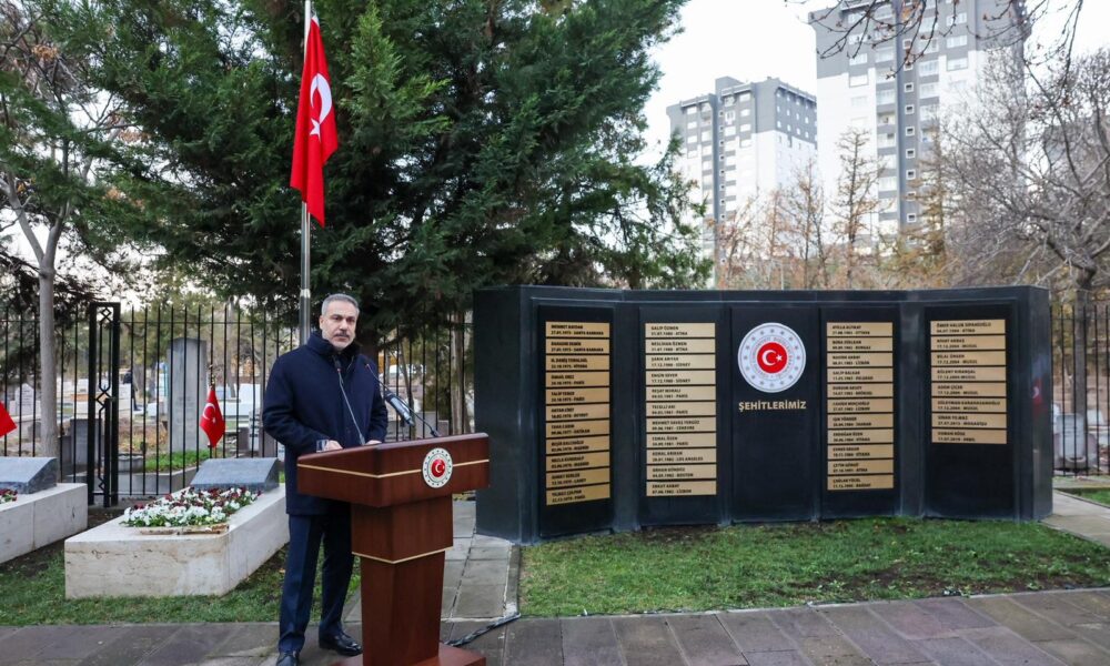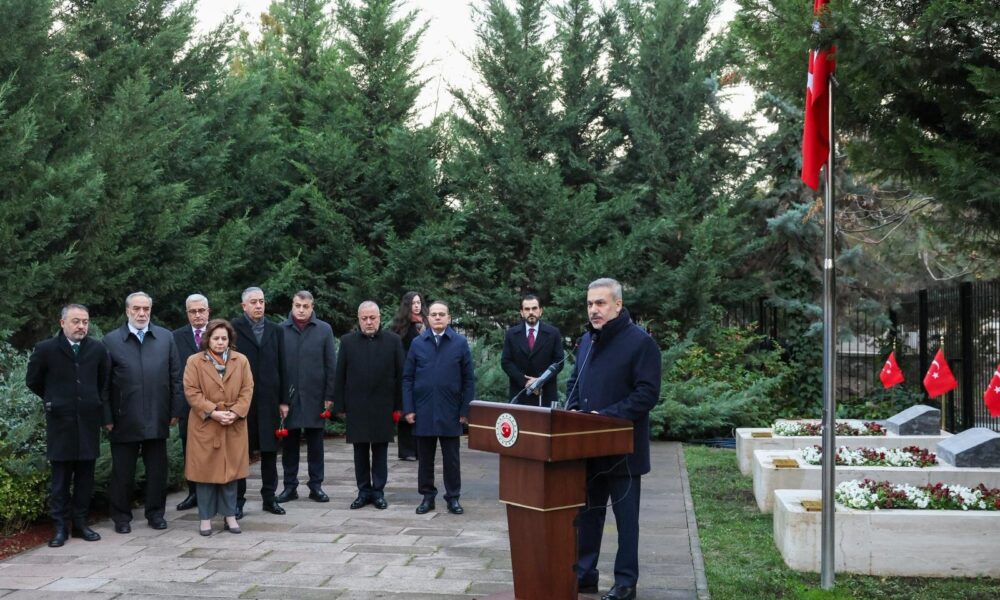Bakan Fidan, 16’ncı Büyükelçiler Konferansının resmi açılış töreni öncesi Cebeci Asri Mezarlığı’ndaki Dışişleri Şehitliğine ziyarette bulundu. Burada düzenlenen törende, şehitler için Kuran-ı Kerim okundu. Fidan, konuşmasının ardından şehitlerin kabirlerine karanfil bıraktı.