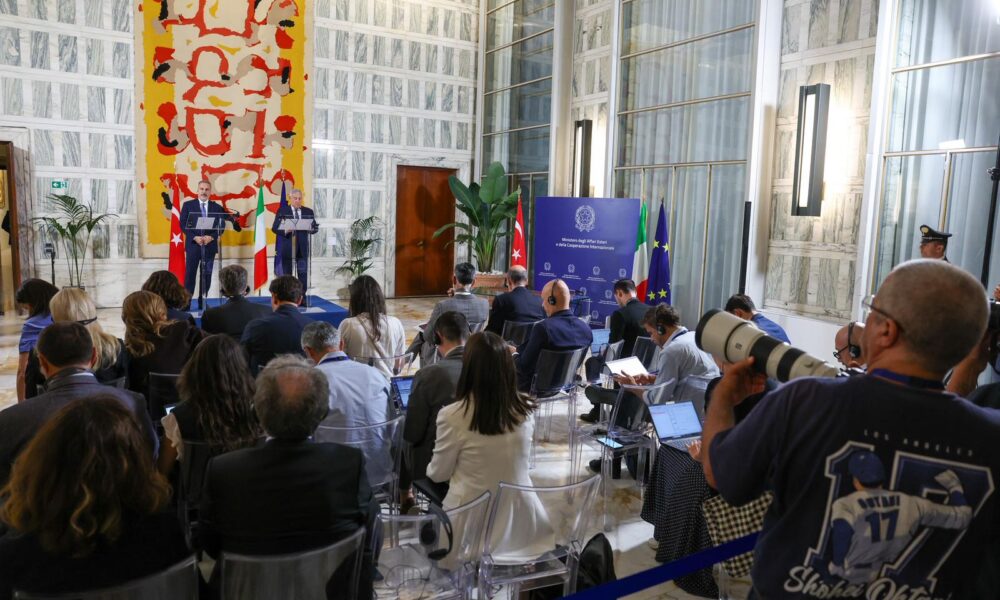Dışişleri Bakanı Hakan Fidan, Roma’da, İtalya Başbakan Yardımcısı ve Dışişleri Bakanı Antonio Tajani ile bir araya geldi. Baş başa ve heyetler arası görüşmenin ardından her iki bakan ortak basın toplantısı düzenledi. Burada konuşan Bakan Fidan, “Bugün toplantılarımızda ikili ve bölgesel konularda iş birliğimizi geliştirmek amacıyla görüş alışverişinde bulunduk. İtalya ile olan stratejik ortaklığımızı daha da derinleştirmek konusunda kararlıyız. Sayın Cumhurbaşkanımız ve İtalya Başbakanı Sayın Meloni bu konudaki iradelerini en güçlü şekilde defalarca ortaya koymuşlardır. Bizler de çeşitli projeler üzerinde çalışarak ülkelerimizin refahı ve güvenliğine katkıda bulunmak için somut adımlar atmaktayız. Aynı zamanda bölgemizdeki diğer ülkelere de fayda sağlayacak çalışmalar yürütmekteyiz” diye konuştu.