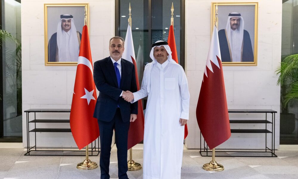 Dışişleri Bakanı Hakan Fidan, Katar’ın başkenti Doha’da Katar Başbakanı ve Dışişleri Bakanı Muhammed bin Abdurrahman El Sani ile görüştü. Görüşmeye ilişkin fotoğraf paylaşıldı.