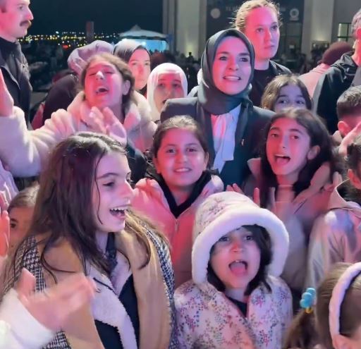 Bakan Göktaş, çocuklarla birlikte ilahiye eşlik etti