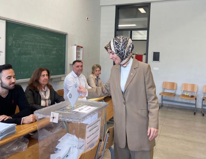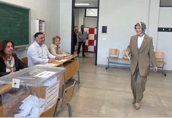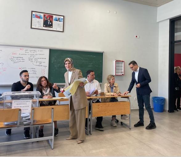 AİLE ve Sosyal Hizmetler Bakanı Mahinur Özdemir Göktaş, Ankarada oyunu kullandı. Bakan Göktaş, “Bugün demokrasimizin bayram günü. Bizler de her vatandaşımız gibi vatandaşlık görevimizi yerine getirdik” dedi.Aile ve Sosyal Hizmetler Bakanı Mahinur Özdemir Göktaş, Çankaya ilçesindeki Gazi Anadolu Lisesi’nde 4 bin 135 numaralı sandıkta oyunu kullandı. Bakan Göktaş, oyunu kullandıktan sonra çıkışta yaptığı açıklamada, “Bugün demokrasimizin bayram günü. Bizler de her vatandaşımız gibi vatandaşlık görevimizi yerine getirdik. Oyumuzu kullandık, sonuçların da İnşallah ülkemiz için milletimiz için hayırlara vesile olmasını diliyorum. Türkiye’nin kazanacağı bir seçim olacağına yürekten inanıyorum” diye konuştu.