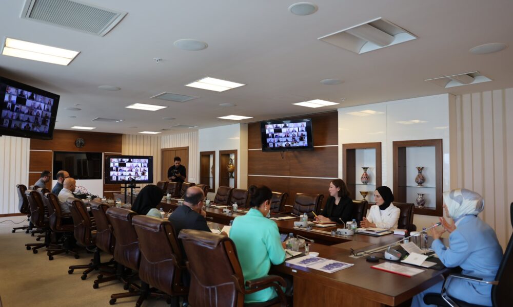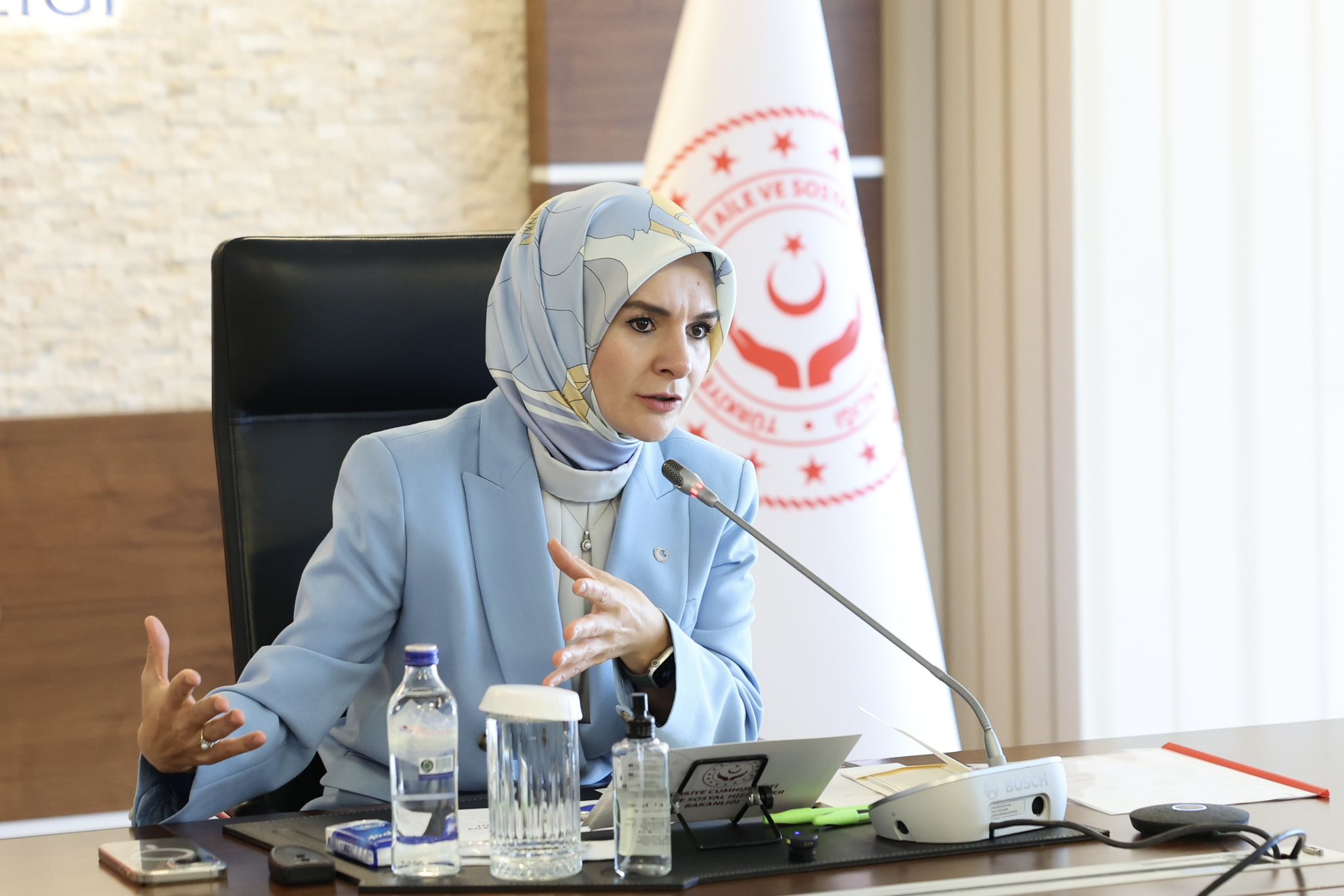 • Aile ve Sosyal Hizmetler Bakanı Mahinur Özdemir Göktaş, kadına yönelik şiddetle mücadelede danışmanlık ve rehberlik hizmeti veren Şiddet Önleme ve İzleme Merkezi (ŞÖNİM) müdürleriyle çevrim içi toplantıda bir araya geldi. Fotoğraf: Ankara, (DHA)