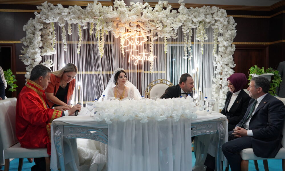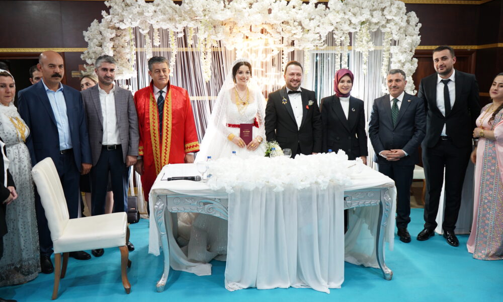 AİLE ve Sosyal Hizmetler Bakanı Mahinur Özdemir Göktaş, yetiştirme yurdunda büyüyen Siirt Aile ve Sosyal Hizmetler İl Müdürü Sabri Sidar (33) ile Elif Sidar’ın nikah şahitliğini yaptı. Bakan Göktaş, “Nikahına bizi davet etmesinden dolayı, tabii ki öncelikle bir vazifemiz, mutlu olduk. Zor gününde yanında olan devlet, mutlu gününde de elbette yanında olacaktı. Bizler için şereftir. Devletimiz her daim yanınızda” dedi.Şırnakta dünyaya gelen Sabri Sidar, babasının vefatının ardından bir süre kardeşi Aydın ile babaannesi ve dedesinin yanında yaşadı. Babaanne ve dedesinin yaşının ilerlemesi, kendileriyle yeterince ilgilenememeleri üzerine, 11 yaşındayken kendisinden 2 yaş küçük kardeşiyle Siirtte devlet korumasına verildi. Devlet korumasında yetiştikten sonra kamuda farklı illerde görev yapan Sabri Sidar, Siirte Aile ve Sosyal Hizmetler İl Müdürü olarak atandı. Sidar, bugün kentteki bir otelde Elif Sidar ile dünyaevine girdi. Aile ve Sosyal Hizmetler Bakanı Mahinur Özdemir Göktaş da çiftin düğününe katıldı. Zılgıtlarla karşılanan Bakan Göktaş, Belediye Başkanı Mehmet Yarka’nın kıydığı nikahta Vali Cevdet Atay ile birlikte çiftin nikah şahitliğini yaptı.Bakan Göktaş nikah töreninde yaptığı konuşmada, Kürtçe ‘Hayırlı Olsun’ dileklerinde bulundu. Sabri Sidar ile her zaman gurur duyduklarını belirten Bakan Göktaş, “Sabri kardeşimiz beni ocak ayında nikahına davet etti. Daha önceki Şırnak ziyaretimde kendisi ile burada tanıştım. Burada il müdür yardımcımızdı. Akabinde kendisini beğendik ve hakikaten çalışmalarını takdir ettik ve şu anda kendisi bizim Siirt İl Müdürümüz. Kendisi bizim kurumlarımızdan çıktı. Şu anda onun da bir sürü çocuğu var. Ona emanet edilen bir sürü kuruluşlarımız var. Kendisi ile başarıları ile devlet olarak her zaman gurur duyduk ve nikahına bizi davet etmesinden dolayı, tabii ki öncelikle bir vazifemiz, mutlu olduk. Zor gününde yanında olan devlet, mutlu gününde de elbette yanında olacaktı. Bizler için şereftir. Devletimiz her daim yanınızda ve bu evlilik yoluna çıktığın bu kutlu yolda hem sana hem Elif’e öncelikle hayırlı uğurlu olsun diyorum” dedi. Sidar çiftinin evliliklerinin başkalarına örnek olacağına inandığını belirten Bakan Göktaş, “Rabbim iki cihan saadeti nasip eylesin hayırlı uğurlu olsun. Tabi bu aile cüzdanını kızımız Elif’e vermek istiyorum” ifadelerini kullandı. Nikah töreninin ardından Şırnak Belediyesi’ne geçen Bakan Göktaş, yeniden başkan seçilen Mehmet Yarka’yı tebrik etti.