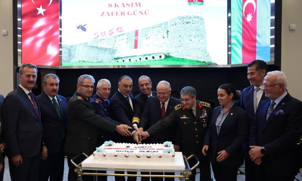 Azerbaycanın 8 Kasım Zafer Günü ve 9 Kasım Devlet Bayrak Günü dolayısıyla Gazi Orduevinde düzenlenen resepsiyona Milli Savunma Bakanı Yaşar Güler, Genelkurmay Başkanı Orgeneral Selçuk Bayraktaroğlu ve Kuvvet Komutanları, Savunma Sanayii Başkanı Haluk Görgün, Azerbaycan Ankara Büyükelçisi Reşad Memmedov, Büyük Birlik Partisi Genel Başkanı Mustafa Destici ve çok sayıda davetli katıldı. Burada konuşan Milli Savunma Bakanı Yaşar Güler, “Bugün kahraman Azerbaycan ordusunun 5 yıl önce kazandığı mümtaz zaferi bir kez daha büyük bir gururla yad ediyoruz. Öncelikle bu kutlu gün vesilesiyle Azerbaycan ordusunun tüm mensuplarını yürekten tebrik ediyor vatan uğruna canlarını feda eden aziz şehitlerimizi rahmetle gazilerimizi minnetle yad ediyorum. Şanlı Azerbaycan ordusunun yüreği yurt aşkıyla çarpan kahraman askerleri öz vatanı Karabağı işgalden kurtarmak yıllardır süren zulme ve haksızlığa dur demek üzere harekete geçmiş ve destansı bir mücadele ortaya koymuştur. Onların gösterdiği cesaret azim ve kararlılık Türk tarihinin altın sayfalarına kazınmıştır. 44 gün boyunca sürdürülen bu mücadele ve neticesinde elde edilen büyük zafer, askeri bir başarı olmanın yanında varlığını vatan ve bayrak uğruna adayan bir milletin kendi topraklarını özgürleştirme iradesinin de en açık göstergesi olmuştur. Ne mutlu ki bugün can Azerbaycan’ın üç renkli şanlı bayrağı Karabağ’da vuslata ermenin coşkusuyla dalgalanmakta Türk’ün zaferini selamlamaktadır” dedi.