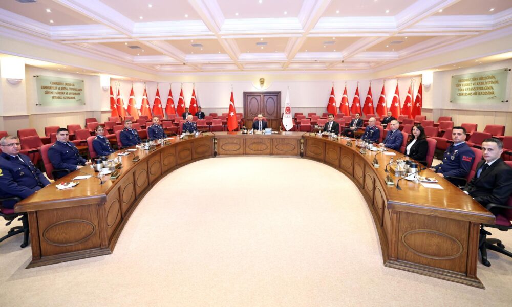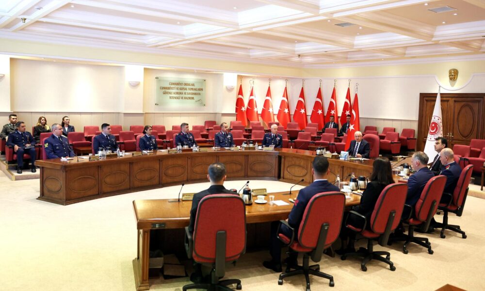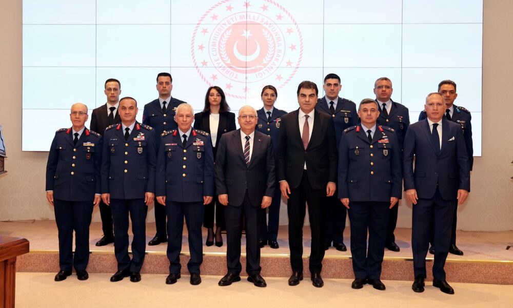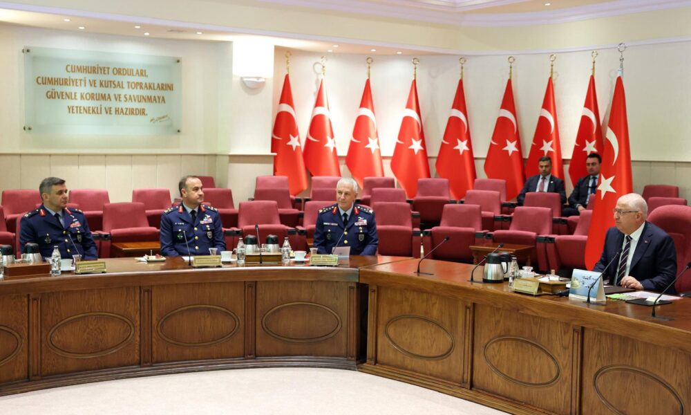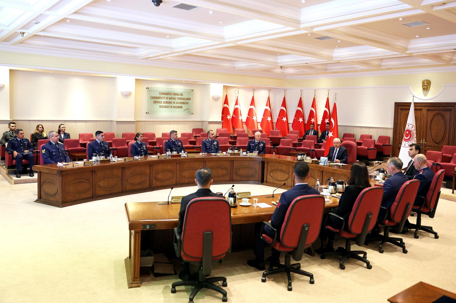 Milli Savunma Bakanı Yaşar Güler, Hava Kuvvetleri Komutanlığı'nın kuruluşunun 114'üncü yıl dönümü nedeniyle Hava Kuvvetleri Komutanı Orgeneral Ziya Cemal Kadıoğlu ve beraberindeki personeli kabul etti. Fotoğraf: Ankara, (DHA)