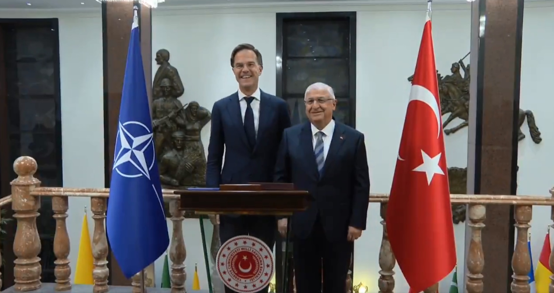 Bakan Güler, resmi ziyaret kapsamında Ankarada bulunan NATO Genel Sekreteri Rutte ile görüştü. Rutte ile beraberindeki heyet, Bakan Güler ile Milli Savunma Bakanlığında bir araya geldi. Bakanlığın sosyal medya hesabından görüşmeden görüntüler paylaşıldı.
