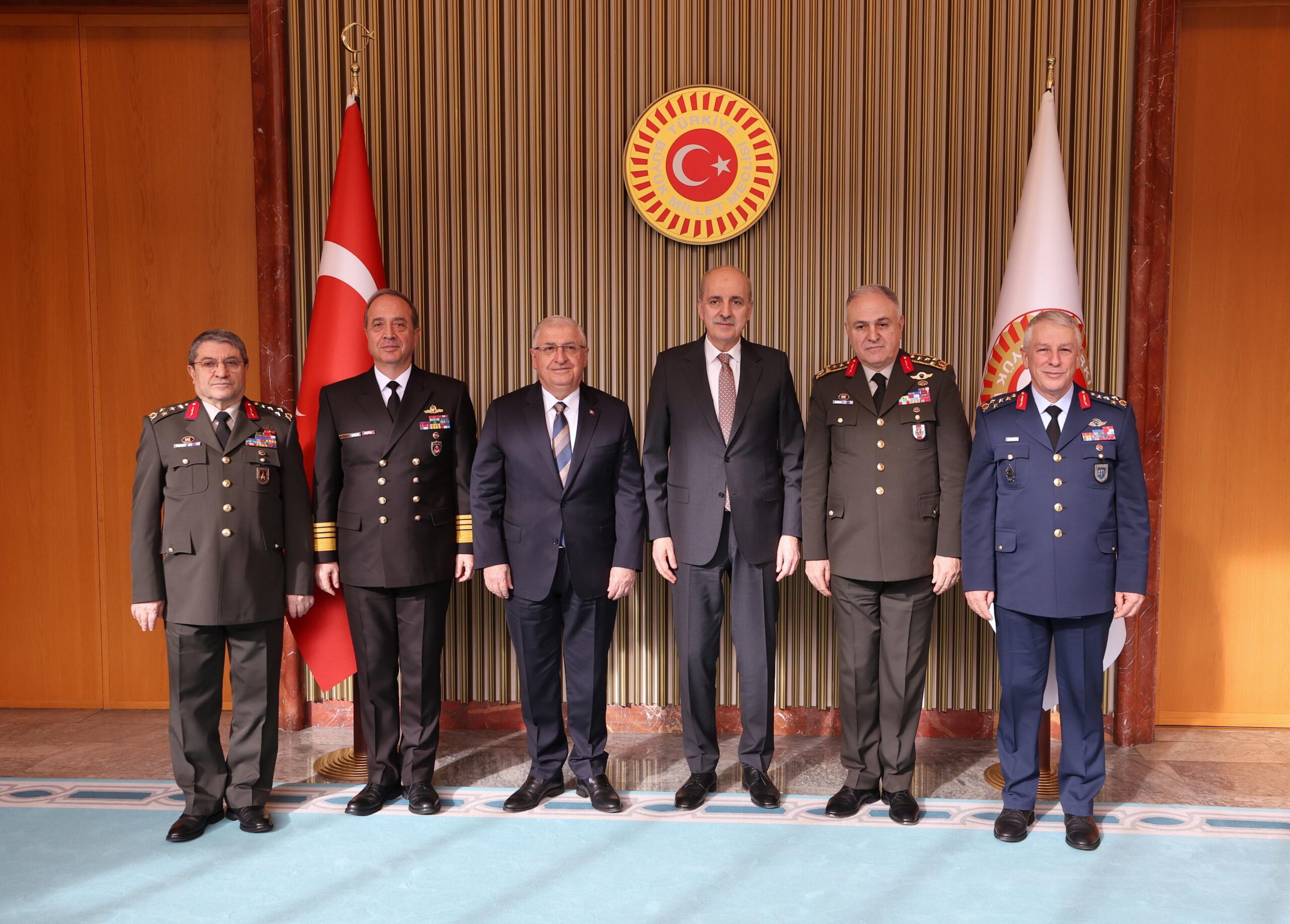 MİLLİ Savunma Bakanı Yaşar Güler ve beraberindeki kuvvet komutanları, Türkiye Büyük Millet Meclisi (TBMM) Başkanı Numan Kurtulmuş’u makamında ziyaret etti.