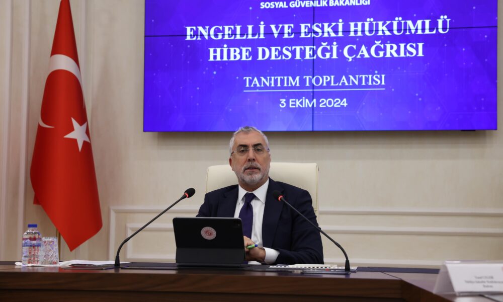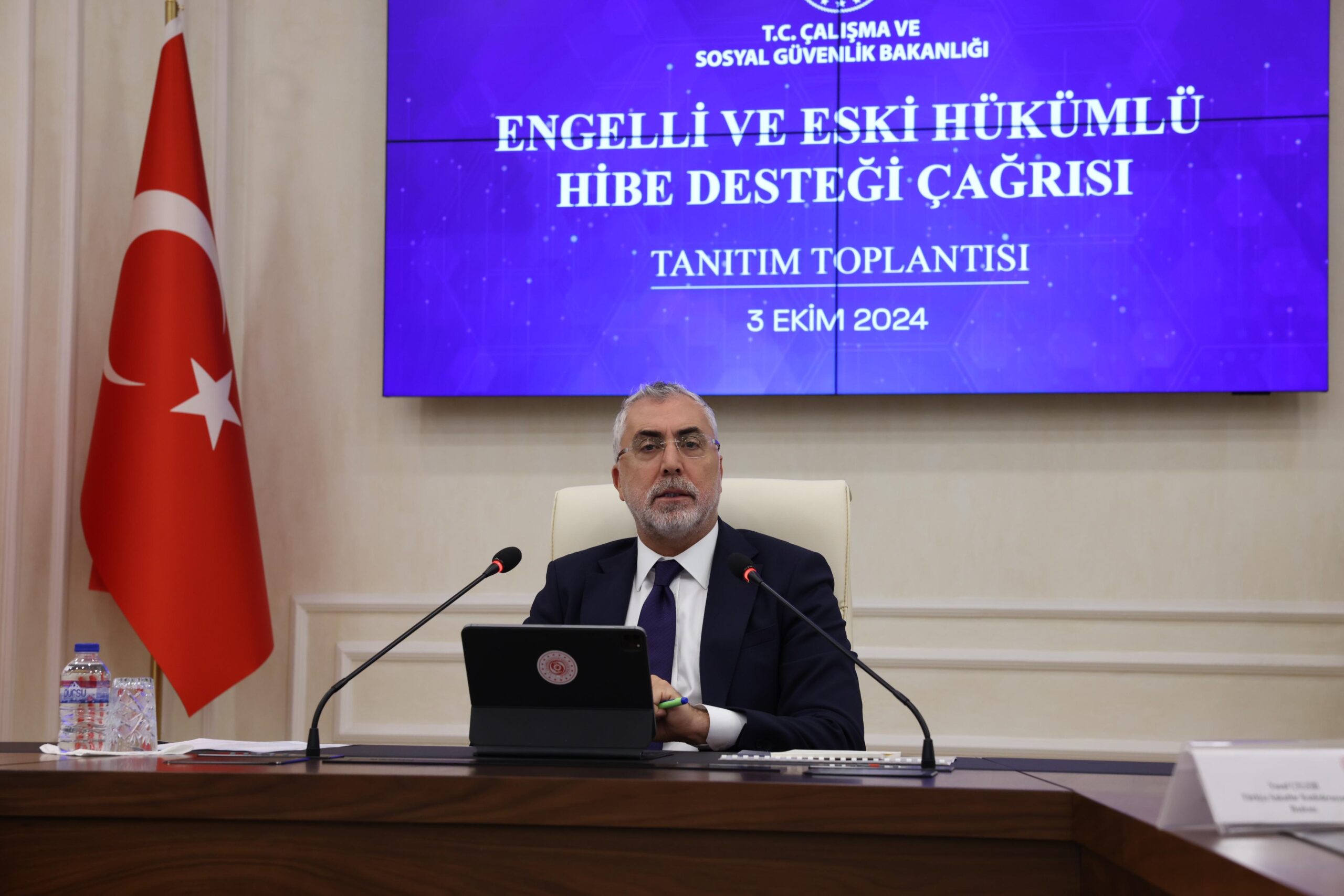 Çalışma ve Sosyal Güvenlik Bakanı Vedat Işıkhan, Çalışma ve Sosyal Güvenlik Bakanlığı Reşat Moralı Toplantı Salonu’nda düzenlenen ‘Engelli ve Eski Hükümlü Hibe Desteği Çağrısı’ toplantısına katıldı. Fotoğraf:Ankara, (DHA)