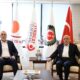 Çalışma ve Sosyal Güvenlik Bakanı Vedat Işıkhan, Asgari Ücret Tespit Komisyonu'nun 2'nci toplantısı öncesi Hak İşçi Sendikaları (HAK-İŞ) Konfederasyonu Genel Başkanı Mahmut Arslan'ı (Sağda) ziyaret etti. Fotoğraf: Ankara, (DHA)