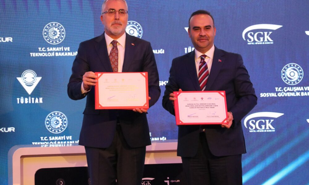 Çalışma ve Sosyal Güvenlik Bakanı Vedat Işıkhan ile Sanayi ve Teknoloji Bakanı Mehmet Fatih Kacır, Sosyal Güvenlik Kurumu (SGK) ve Türkiye İş Kurumunun (İŞKUR), dijital dönüşüm ve bilimsel araştırmaların desteklenmesi amacıyla Türkiye Bilimsel ve Teknolojik Araştırmalar Kurumu (TÜBİTAK) ile yaptığı iş birliğinin protokol imza törenine katıldı. TÜBİTAKta gerçekleştirilen programda, Işıkhan ve Kacır, iş birliği protokolünü imzaladı.