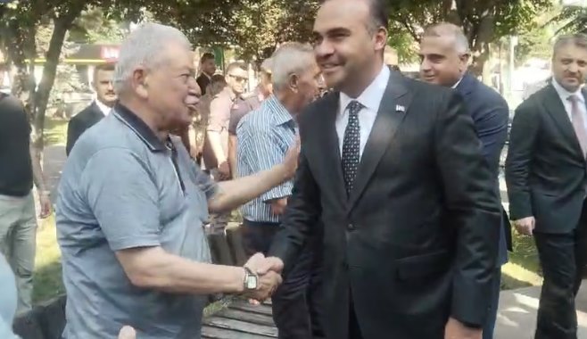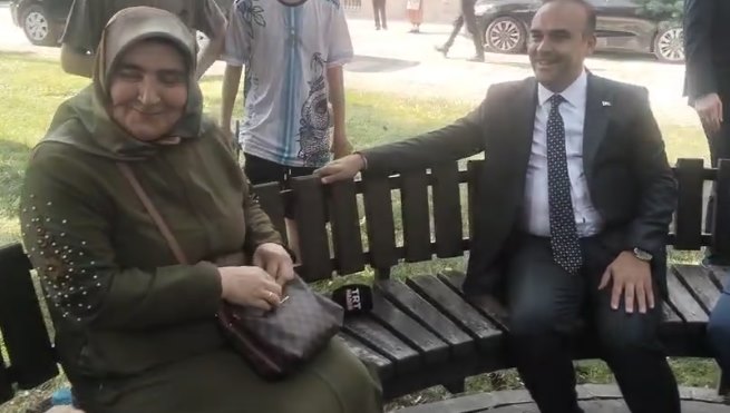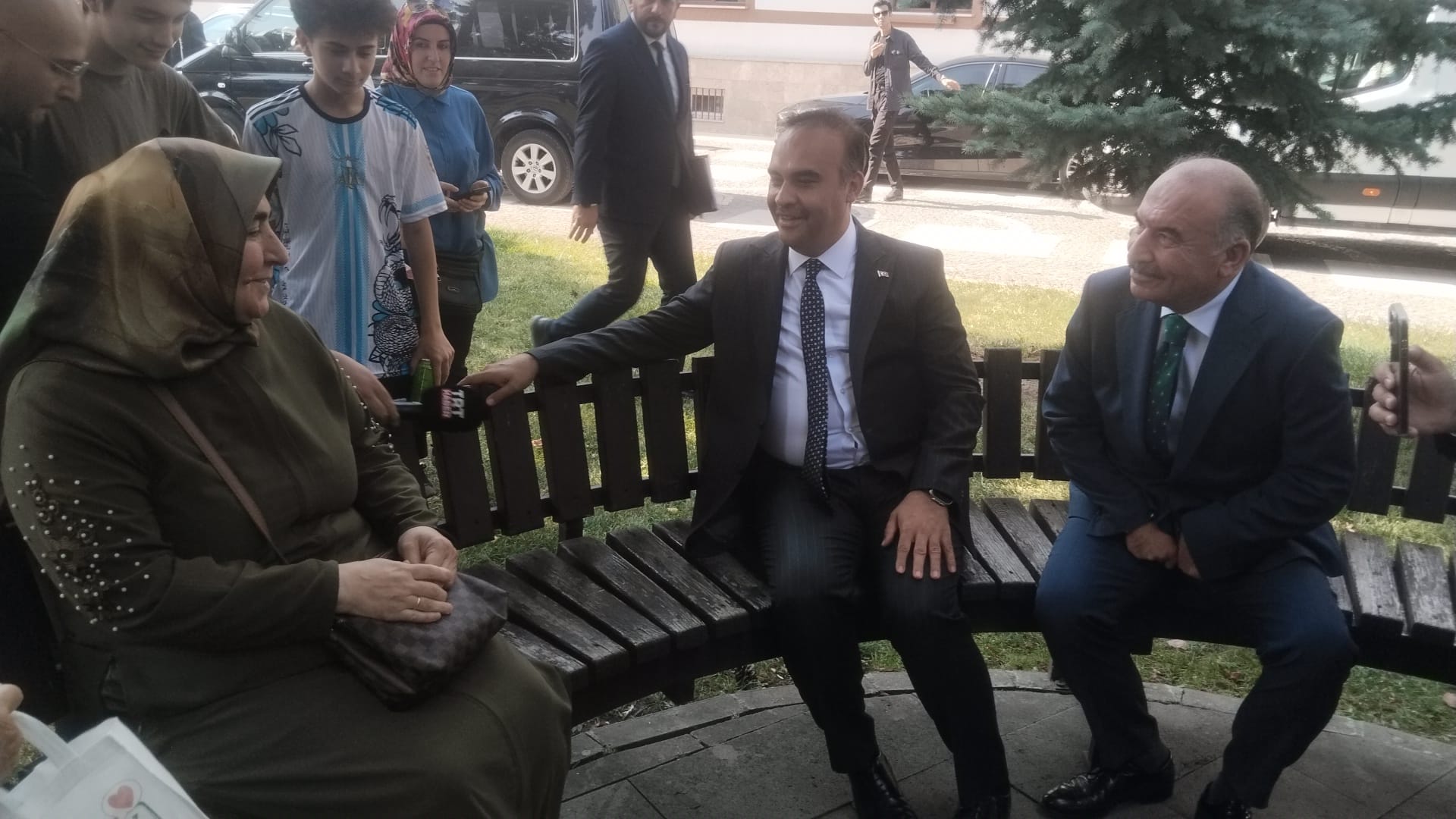 • Sanayi ve Teknoloji Bakanı Mehmet Fatih Kacır, Çorum'da ziyaret sırasında parkta oturan vatandaşlar ile bir süre sohbet etti. Fotoğraf: Yusuf ÇINAR/Çorum, (DHA)