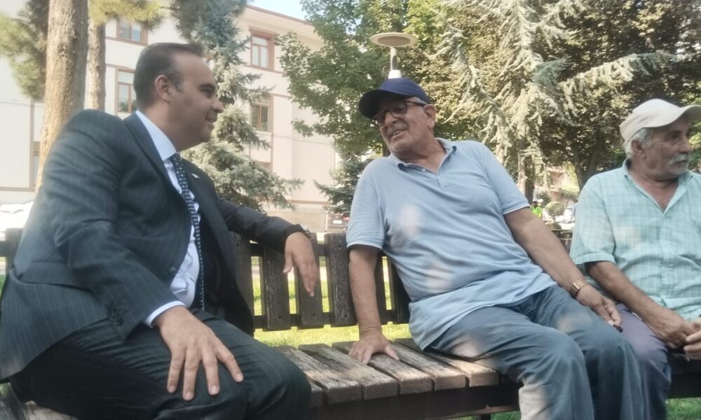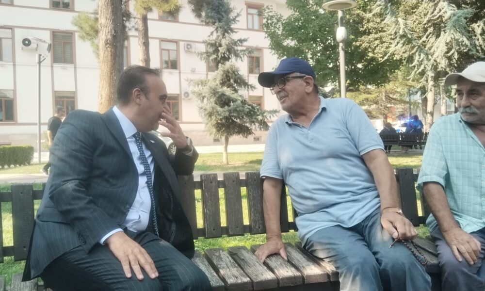 • Sanayi ve Teknoloji Bakanı Mehmet Fatih Kacır (Ortadaki), Çorum'da ziyaret sırasında parkta oturan vatandaşlar ile bir süre sohbet etti. Fotoğraf: Yusuf ÇINAR/Çorum,(DHA)
