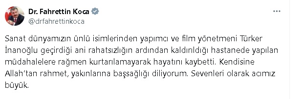 Bakan Koca: Yapımcı ve film yönetmeni Türker İnanoğlu hayatını kaybetti
