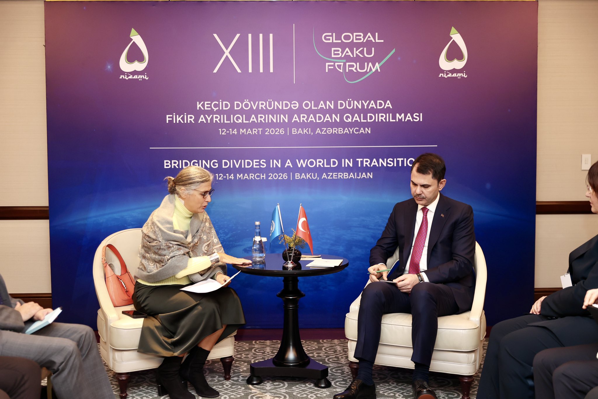 Çevre, Şehircilik ve İklim Değişikliği Bakanı Murat Kurum, sanal medya hesabından yaptığı paylaşımda, “Küresel Bakü Forumu vesilesiyle BM Habitat İcra Direktörü Sayın Anaclaudia Rossbach ile ikili bir görüşme gerçekleştirdik. İklim diplomasisi kapsamında yürüttüğümüz çalışmaları ve COP sürecine yönelik yaklaşımımızı paylaştık. Önümüzdeki dönemde İstanbul’da kurulacak bölgesel ofisin de katkısıyla BM Habitat ile iş birliğimizin daha da güçleneceğine inanıyoruz” ifadelerini kullandı.