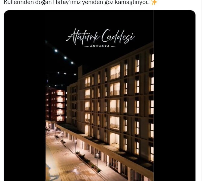 Antakya merkezde büyük yıkımın yaşandığı Atatürk Caddesi, TOKİ ve Emlak Konut GYO iş birliğiyle yeniden ayağa kalkıyor. Atatürk Caddesi’nde 4 bin 121i konut, 1812 iş yeri ve ofis olmak üzere toplam 5 bin 933 bağımsız bölüm inşa ediliyor. Caddenin çevresindeki çok sayıda ev ve iş yeri tamamlanma aşamasına geldi. Çevre, Şehircilik ve İklim Değişikliği Bakanı Murat Kurum, Atatürk Caddesinin yeni görüntülerini sosyal medya hesabından paylaşarak, “Küllerinden doğan Hatayımız yeniden göz kamaştırıyor” ifadelerini kullandı.