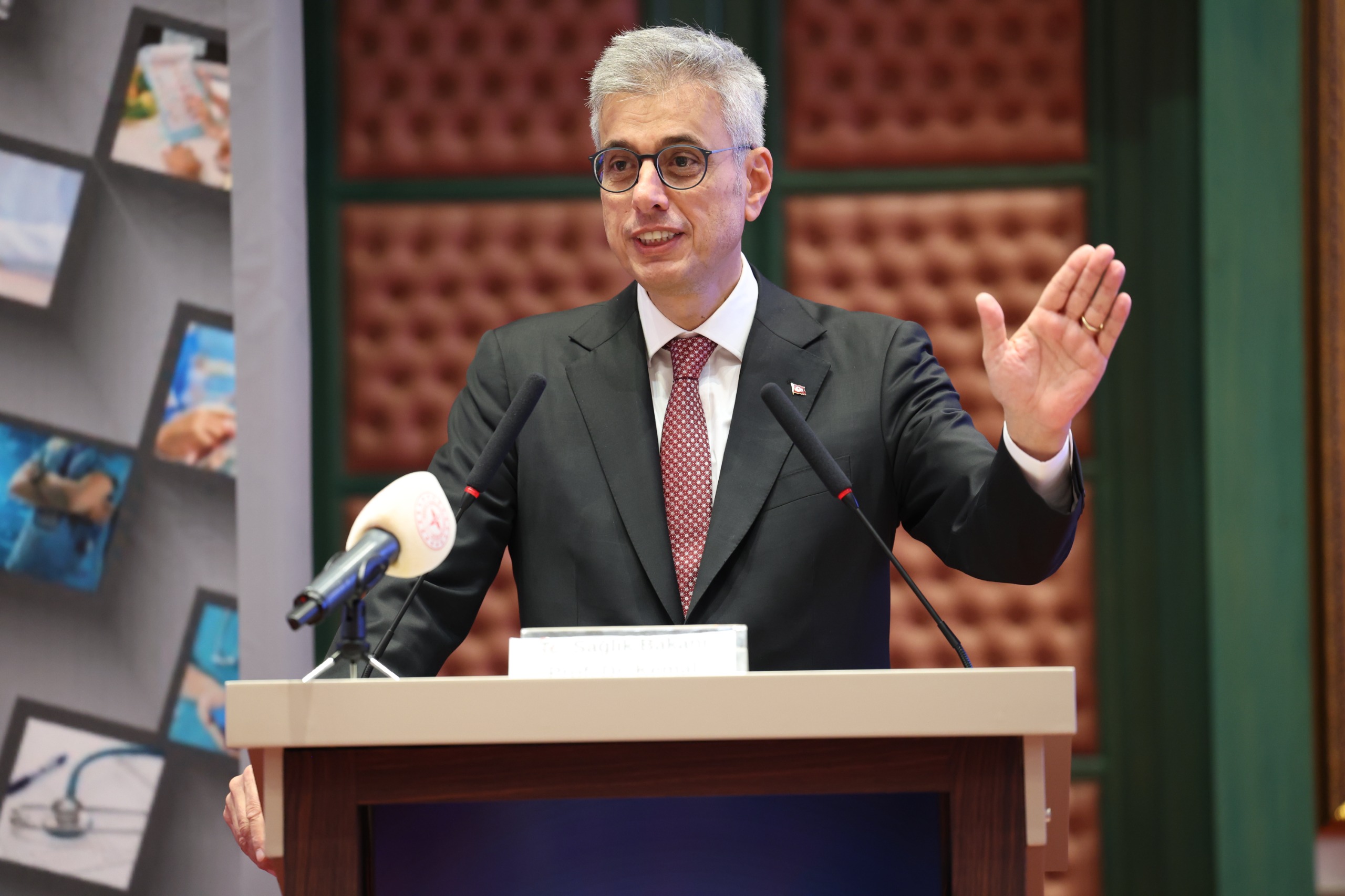 Türkiye’nin sağlık alanında çok şanslı bir ülke olduğunu söyleyen Bakan Memişoğlu, “Öğrencisinden hekime, hemşiresine kadar tüm sağlık çalışanlarımız zeki ve çalışkan, güçlü bir kadroya sahibiz. Bu, bizim en büyük beşerî sermayemiz. Şimdiye kadar ağırlıklı olarak sağlık hizmetine odaklandık. Bundan sonra üretim ve bilgi geliştirmede de güçlü bir altyapı kurmamız gerekiyor. Bu amaçla ‘Fikirden Ürüne-Üreten Sağlık Modeli’ni başlattık. Bu kolay bir iş değil. Mantık değişikliği, davranış yöntemini değiştirecek uzun bir iştir. Uzun solukludur. Bugün veya yarın olmaz. Ama 5-10 senelik programlar bunlar. Biz başladık. Siz bunu tepe noktasına ulaşacaksınız” dedi.