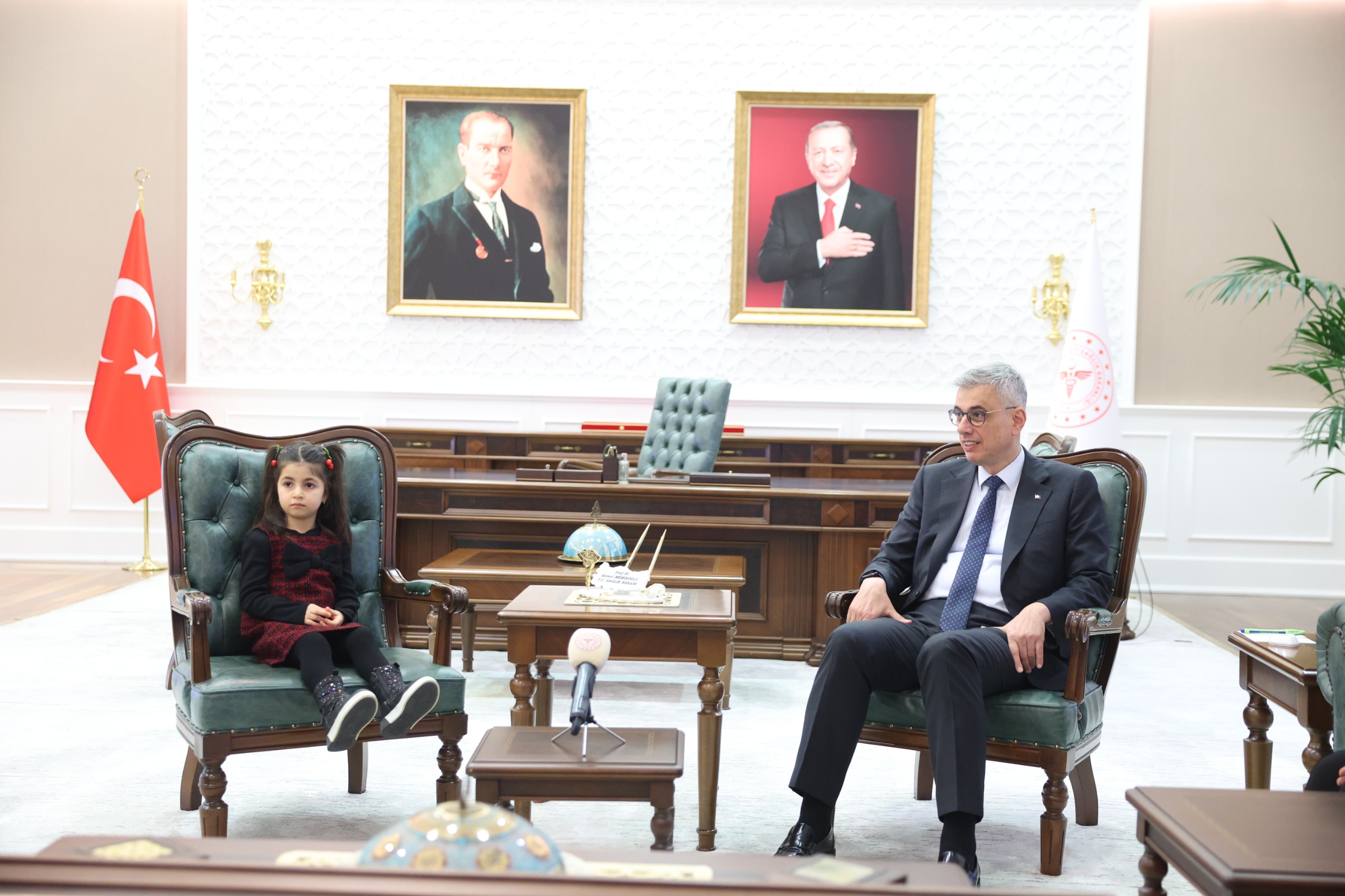 • Sağık Bakanı Kemal Memişoğlu, 'sağlık elçisi’ olarak görevlendirdiği Doğa ve sigarayı bıraktırdığı dedesi dolayısıyla ile bir araya geldi. Fotoğraf: Ankara, (DHA)