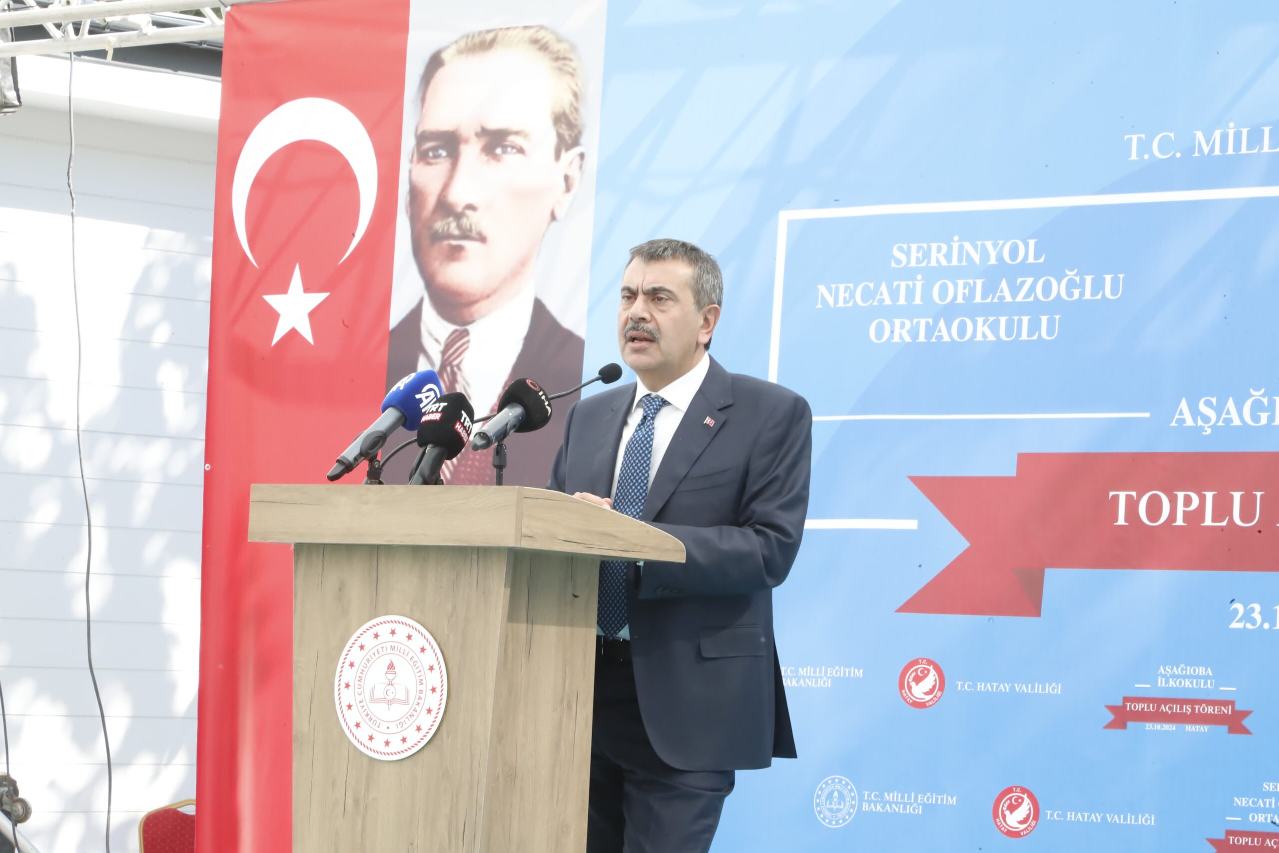 Konuşmaların ardından Altınözü ilçesinde yapımı tamamlanan Aşağıoba İlkokulu ve Üzümdalı Şehit Mehmet Uçar İlk ve Ortaokulu ile Serinyol Necati Oflazoğlu Ortaokulunun açılış kurdelesi kesildi.
