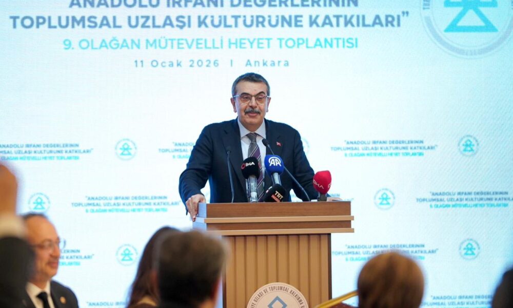 Tekin, “Dünyanın neresinde bir haksızlık, bir katliam, bir zulüm yaşanıyorsa; hangi coğrafyada insan onuru çiğneniyorsa, biz oraya bu milletin asırlardır taşıdığı vicdanla, yüreğimizdeki kardeşlik hukukuyla ve üzerinde yaşadığımız toprağın yüklediği mesuliyetle bakarız. Kutuplaştıran her kelime, bu toprakların biriktirdiği sükuneti ve vakarını zayıflatır; insanı insana yaklaştıran, konuşturan, birbirine kulak vermeye çağıran her söz ise bu tarihi çizgiyi güçlendirir. Bizim arzumuz, Türkiyenin hem içeride hem dışarıda öfkeyle savrulan bir dünyanın ortasında, aklıselimiyle, vicdanıyla, uzlaşı iradesiyle yükselen bir merkez olarak kalmasıdır. Milli Eğitim Bakanı olarak muradım, bu salondaki arayışı sadece bugünle sınırlı bırakmamak. Uzlaşıyı, Anadolu irfanının taşıdığı o ağırbaşlılıkla, o vakarla birlikte sınıflarımıza, müfredatımıza, öğretmen odalarımıza taşımak için çalışıyoruz. Burada dile getirilen her sözü, her kaygıyı, her teklifi kendi adıma emanet kabul ediyorum. Bu emaneti, eğitim politikalarımızda, çocuklarımıza vereceğimiz istikamette gözümüzün önünde tutacağımıza söz veriyorum. Çocuklarımızın kalbini incelten, zihnini berraklaştıran, birbirini dinlemeyi ve birlikte yürümeyi öğreten bir eğitim iklimi için yürüttüğümüz her çabada, sizlerin desteğini ve katkısını da yanımızda görmek istiyoruz” ifadelerini kullandı.