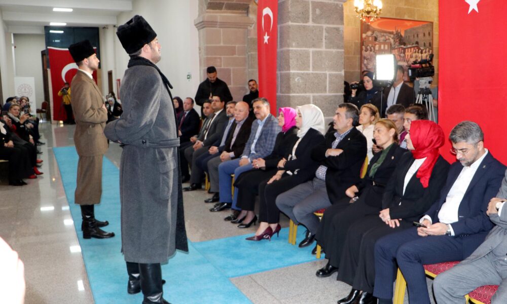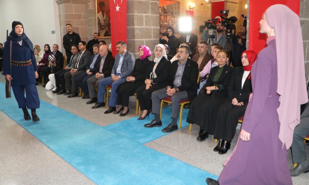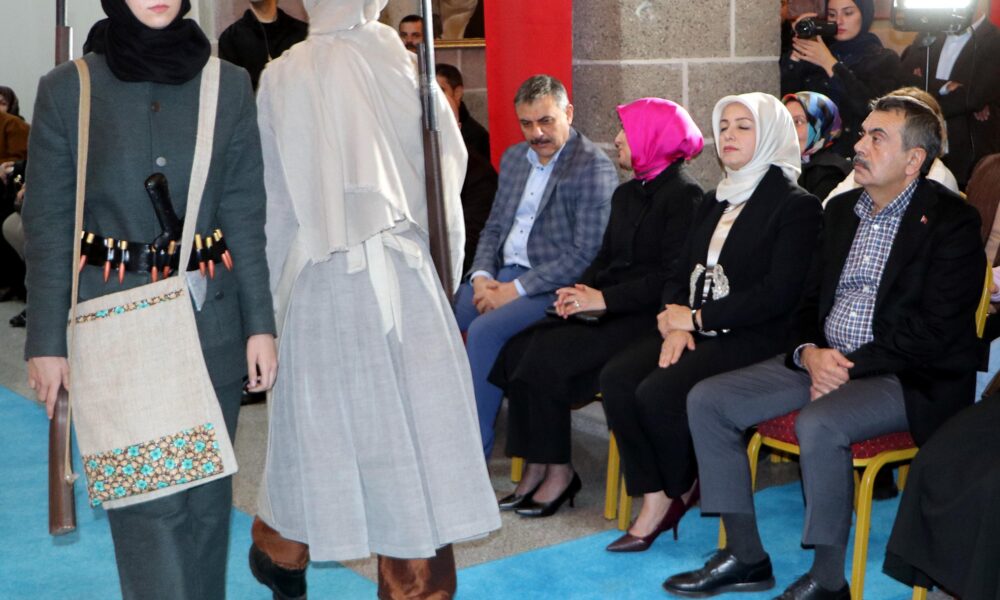 “Cumhuriyete taşıyan kurtuluş savaşımıza bize bu toprakları emanet eden atalarımıza, tarihimize, kültürümüze, medeniyet değerlerimize, Anadolu irfanına, Anadolu kültürüne sahip çıkmak hepimizin borcudur. Bu borç içerisinde en büyük yükte kuşkusuz Milli Eğitim Bakanlığına düşüyor. Milli Eğitim Bakanlığı olarak bu borcu ifa etmek, hakkıyla yerine getirmek için birçok çaba sarf ediyoruz, sarf edeceğiz, sarf etmeye de devam edeceğiz. Bu çabamız sadece yazılı eğitim materyallerinin içerisine eğitim programlarının içerisine bu değerleri nakşetmek, gelecek kuşakların bu değerlerle mücehheze olmasını temenni etmek için eğitim programlarımızı bu değerleri de içerecek şekilde güncellemek değil tabi. Türkiye Yüzyılı maarif modeliyle yapmak istediğimiz şey de aslında bu değerlere sahip çıkmak, bu değerleri korumak, bu değerleri gelecek kuşaklara aksettirmek. Bu defileyi Erzurumda sizlerin beğenisine sunmuş olduk umarım beğenmişsinizdir. Belki de bu defilenin sergilenebileceği en anlamlı şehirlerden bir tanesi Erzurum. Bu defilede gönüllü olarak aramızda bulunan ve profesyonel manken gibi davranan öğrenci kardeşlerimize de teşekkür ediyorum. Bu defilede kullanılan malzemeler olgunlaşmanın envanterine kayıtlı malzemeler. Bakanlığımızın yaptığı kültürel sanatsal ya da eğitimle alakalı başka bir etkinlikte tekrar buluşmak üzere hepinize teşekkür ediyorum.”