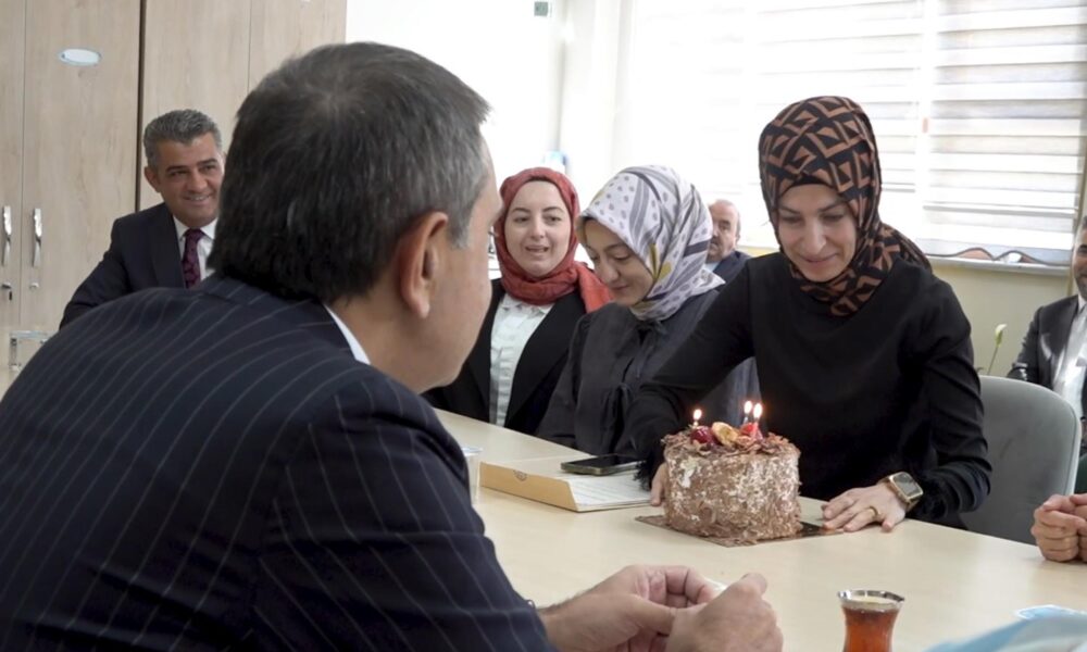 Bir dizi ziyaret ve açılış için Erzuruma gelen Milli Eğitim Bakanı Yusuf Tekin, Raif Azak İmam Hatip Ortaokulunu ziyaret ederek öğrenciler ve öğretmenlerle bir araya geldi. Öğrencilerin sınıflarına girerek derslere katılan Bakan Tekin, “Bir eksiğiniz var mı?” diye sordu. Öğrenciler, herhangi bir ihtiyaçlarının olmadığını belirterek teşekkür ederken; Bakan Tekin de “Ailelerinize selam söyleyin” dedi. Öğretmenler odasında eğitimcilerle bir araya gelen Bakan Tekin, görüş ve taleplerini dinledi. Öğretmenler, Türkiye Yüzyılı Maarif Modeli konusunda fikirlerini dile getirdi. Öğretmenler odasında fen bilimleri öğretmeni Dilek Akgün Karagülün doğum gününü kutlayan Bakan Tekin, kendisine kalem ve çiçek hediye ederek sürpriz yaptı. Sürpriz karşısında mutluluğunu dile getiren öğretmen Karagül, “İlginiz ve hassasiyetiniz için çok teşekkür ederim” dedi.