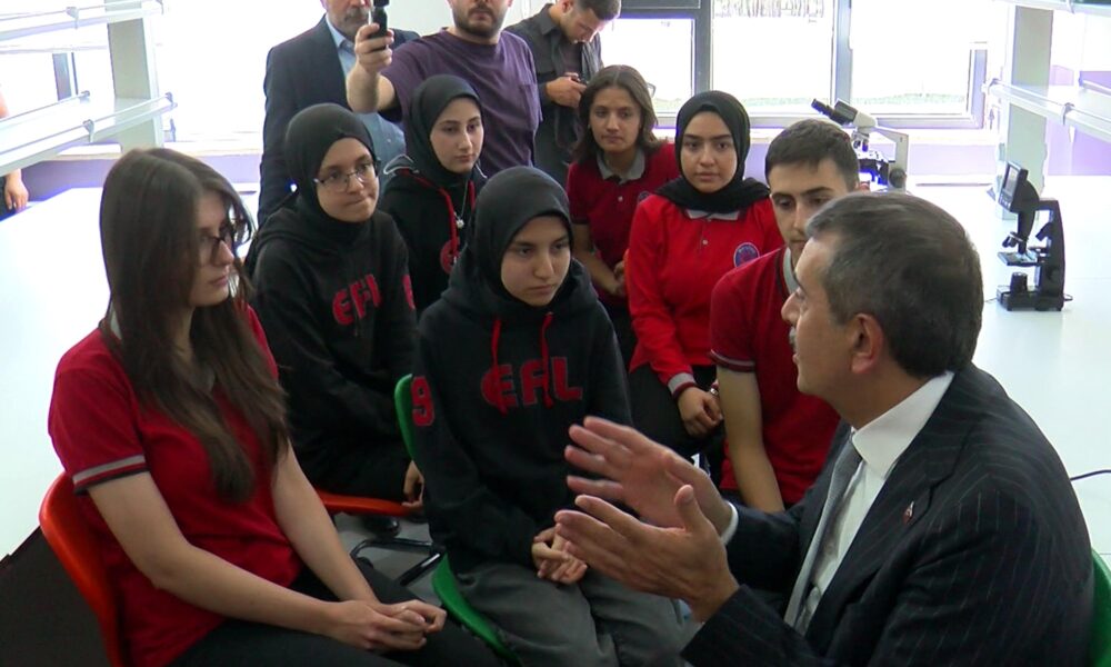 Bakan Tekin, konuşması sonrası lisenin açılışını protokol ve öğrencilerle birlikte yaptı. Okulda derslikleri gezen bakan Tekin, laboratuvarda öğrencilerle sohbet etti. Öğrencileri ders kitabı ve açılan kurslar hakkında uyaran Tekin, “Kimin yazdığını bilmediğiniz ders kitapları. Kimin yazdığını bilmiyorsunuz. Size birileri diyor ki çok güzel bir kitap. Bunu diyen kim? Kitabı yazan kim? Kitabı yazan bu konuları biliyor mu, kaç yıl öğretmenlik yapmış? Akademisyen mi? Bilmiyorsunuz. O kitaplara güvenmeyin. Ders kitabından başka bir şeye ihtiyacınız yok. Merdiven altında kurslar yapıyorlar. O kursları açanların büyük çoğunluğu, öğretmenleriniz gibi öğretmen olmak üzere buralara başvuruyorlar. Sınavı kazanamadıkları için öğretmen olamıyorlar. Gidiyor; merdiven altında kurs açıyorlar. Burada bu sınavı kazanmış, onlardan daha çalışkan, daha başarılı öğretmenleriniz varken, yıllarca öğretmenlik yapmış kişiler varken gidiyorsunuz. Akıl karı bir iş değil” diye konuştu.