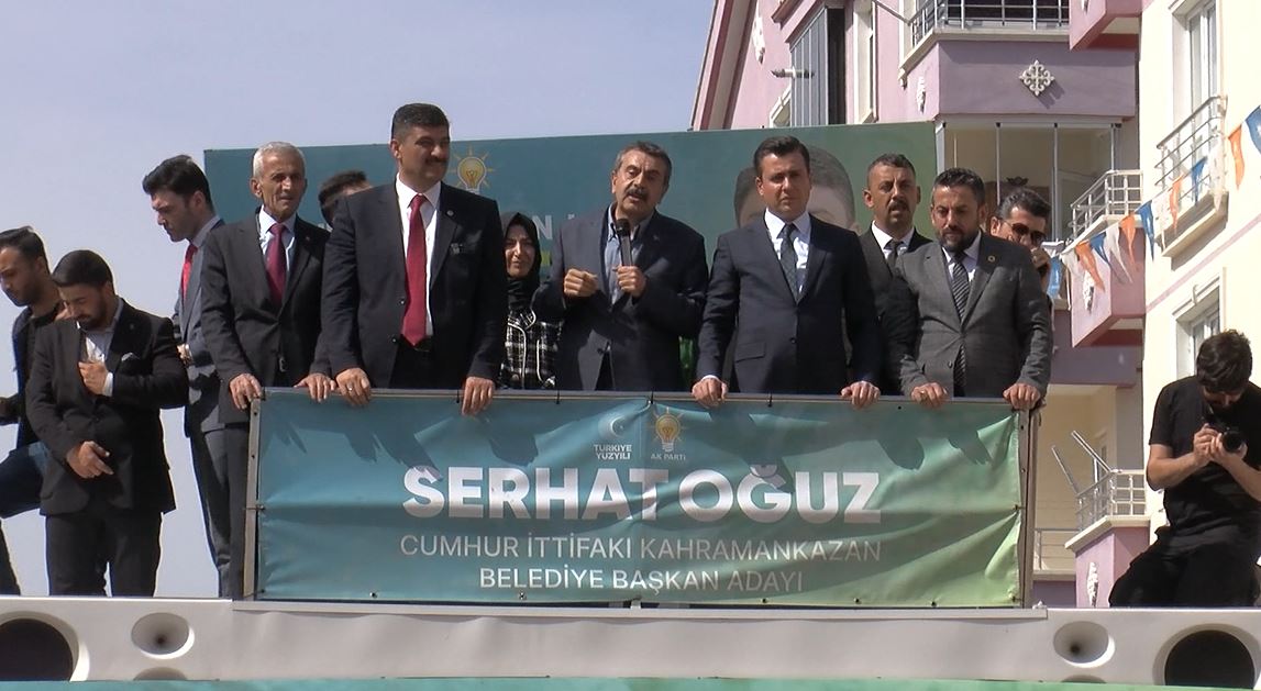 MİLLİ Eğitim Bakanı Yusuf Tekin, “Yarın toplumu ayrıştıran, ötekileştiren bu kitlelerin tamamına ders vermek için hepimiz sandık başında olacağız. Ben size güveniyorum. Yarın vereceğiniz oyla ait olduğu kimlikle gurur duyan insanları mı seçtiğinizi göstereceksiniz, yoksa birlikte yol yürüdüğü insanların adını zikretmekten, bayrağını zikretmekten korkan, kimliğini her daim gizleyen birilerine mi oy vereceksiniz” dedi. Bakan Tekin, Kahramankazan ilçesinde düzenlenen Sevgi Yürüyüşü etkinliğine katıldı. Tekin, Kahramankazan Belediye Başkanı Serhat Oğuz ile beraber, seçim otobüsü üzerinden vatandaşları selamladı. CHP Genel Başkanı Özgür Özelin 15 Temmuz gazilerine Zibidi kelimesini kullandığı iddiasına değinen Bakan Tekin, “Ben her seçimde Herhalde akıllandılar, herhalde biraz hidayete erdiler diyorum; ama her seçimde kendi tıynetlerini bir kez daha ortaya koyan bir kitle var. Ne diyorlar bakın; Sayın Cumhurbaşkanımız, Başbakan olduğunda sizi, yani Anadolu insanını Göbeğini kaşıyan adam, Bidon kafalı insanlar olarak tanımladılar. Ondan dolayı kaybettiler. Hakareti bize değil, bütün Anadolu insanınaydı. Bugün onların Genel Başkanı, 15 Temmuzda vatanını savunan sizlere Zibidi tanımlaması yaptı. Ben o yüzden diyorum ki; konuşan bu 2 ilçe başkanımız var ya, onlar Anadolu insanının ruhunu temsil ediyorlar. Onlar Anadolu insanının vatanseverliğini temsil ediyorlar” ifadelerini kullandı. Kahramankazan Belediye Başkanı Serhat Oğuza destek olmak için geldiğini aktaran Tekin, “Onların milletvekillerinden bir tanesi Serhat Başkanı kastederek Öğretmen işte dedi. Öğretmeni küçümsedi. Öğretmeni küçümsemek ne demek biliyor musunuz? Başöğretmen diye tanımladığınız Atatürkü küçümsemektir. Toplumu eğiten öğretmenlerimizin tamamını küçümsemektir. İşte ben onları kınamak, onların yanında, bütün öğretmenlerimizin, bütün Anadolu insanının yanında olduğumuzu göstermek için bugün Serhat Başkanımızı desteklemek üzere buradayım. Yarın toplumu ayrıştıran, ötekileştiren bu kitlelerin tamamına ders vermek için hepimiz inşallah sandık başında olacağız. Ben size güveniyorum. Yarın vereceğiniz oyla ait olduğu kimlikle gurur duyan insanları mı seçtiğinizi göstereceksiniz, yoksa birlikte yol yürüdüğü insanların adını zikretmekten, bayrağını zikretmekten korkan, kimliğini her daim gizleyen birilerine mi oy vereceksiniz. Ben diyorum ki Anadolu insanı duruşunu, kimliğini dimdik ortaya koyan insanlardan yana olacaktır. Dolayısıyla sizler yarın inanıyorum ki kimliğinden, liderinden, içinden çıktığı Anadolu insanından asla utanmayan, onlarla gurur duyan Turgut Altınok Başkanımızı ve Serhat Oğuz Başkanımızı yarın seçeceğiz” diye konuştu.KIZILCAHAMAM VE ANKARANIN EMRİNDEYİZBakan Tekin, Kahramankazandaki programının ardından Kızılcahamam ilçesine geçti. Vatandaşlara otobüs üzerinden seslenen Tekin, “Bu seçim CHP ve yanındaki DEMle, Anadolu insanını savunan, Anadolu milliyetçiliğini savunan, bu ülkeyi vatan yapan herkesi savunan, Cumhur İttifakının rekabet halinde olduğu bir seçimdir. Bizler yarın saflarımızı bu şekilde ortaya koyacağız. Ya bu ülkenin geleceği için, bu ülkenin çocukları için, sağlıklı bir vatan, güzel bir vatan, vatanlarına sahip çıkan bir nesil bırakmak için oy vereceğiz ya da süslü laflarla bizim önümüze gelen, ne olduklarını açıkça deklare etmekten çekinen, kimin arkasından gittiklerini açıkça deklare etmekten çekinen birilerine bu ülkenin geleceğini teslim edeceğiz. Taktir ve karar sizlerin. Biz siyasetçilere düşen şey bu konuda gördüklerimizi, hissettiklerimizi, okuduklarımızı sizlerle paylaşmak. Biz sizlerin taktirlerinize sığınıyoruz. Cumhurbaşkanlığı Kabinesinin bir ferdi olarak, bir Ankara sevdalısı olarak Kızılcahamamın ve Ankaranın emrindeyiz. Ankaraya ve Kızılcahamama her ne hizmet gerekiyorsa getirmek için Turgut Başkanımızla ve Süleyman Başkanımızla beraber 7/24 çalışmaya hazırız” dedi.