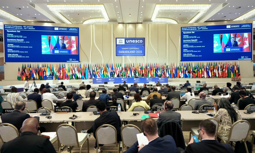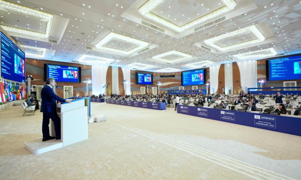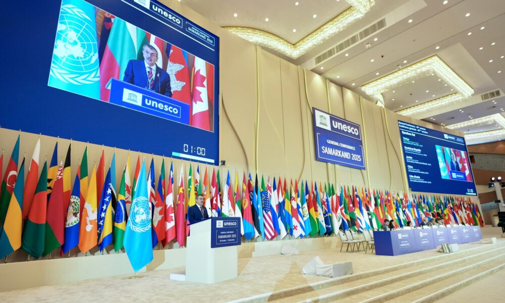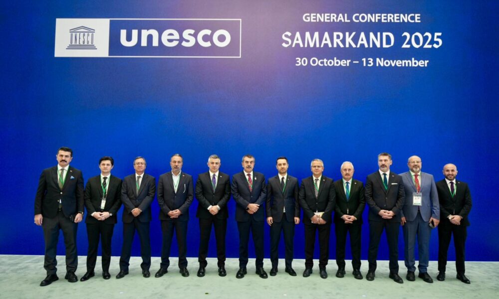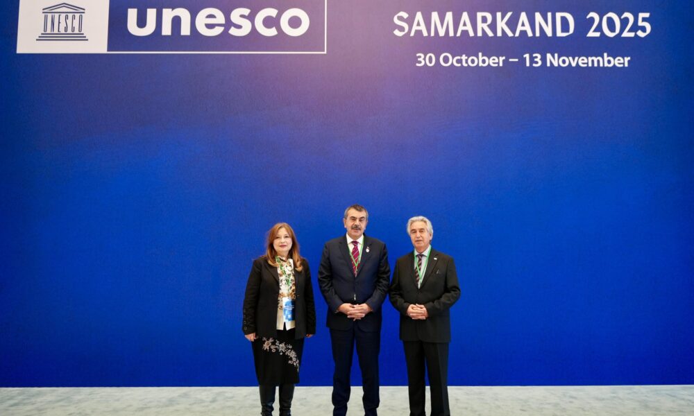 Milli Eğitim Bakanı Yusuf Tekin, Özbekistanın Semerkant şehrinde devam eden UNESCO 43’üncü Genel Konferansı Sabah Oturumu Genel Politika Görüşmeleri kapsamında Ulusal Beyan konuşması yaptı. “UNESCOnun 80’inci yılında, uzun bir aradan sonra ilk kez Paris dışında Türkistanın kalbi, kardeş Özbekistanın kadim kentlerinden Semerkantta sizlere hitap etmekten onur ve mutluluk duyuyorum” sözleriyle konuşmasına başlayan Tekin, UNESCO Genel Direktörlüğü görevine seçilen Prof. Halid el-Enaniyi kutladı. Tekin, adaylığının ilk gününden itibaren destek verdikleri Enaninin her zaman yanında olacaklarını söyleyerek, “Sayın Enaninin hepimizin desteğiyle UNESCOnun mevcut yapısal sorunlarını ivedilikle çözeceğine inanıyoruz. Aynı şekilde, UNESCO Genel Konferans Başkanlığı görevine seçilen Sayın Hondker Muhammed Talhayı da tebrik eder, başarılı olmasını temenni ederim” ifadelerini kullandı.