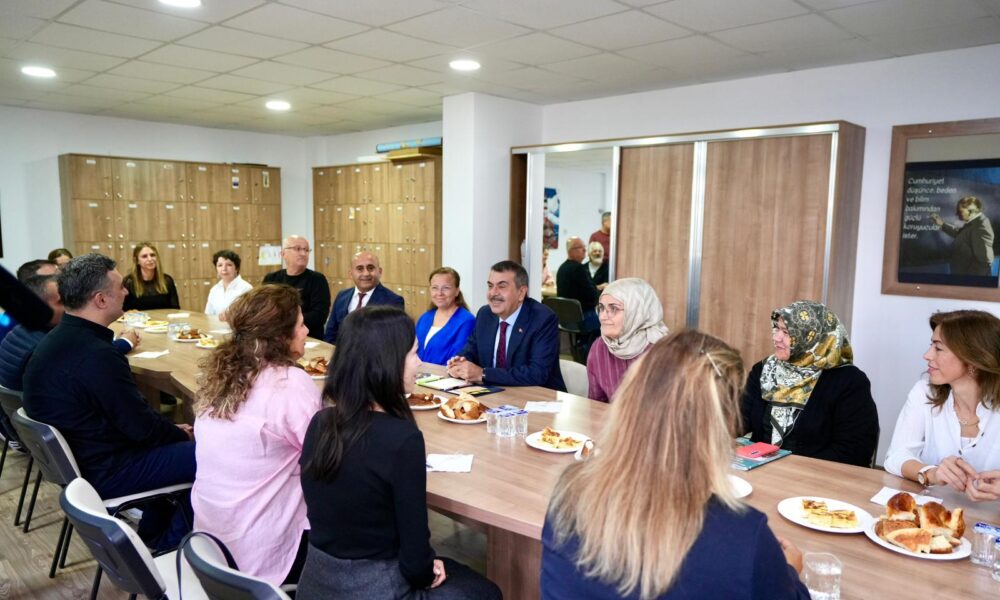 Daha sonra öğretmenler odasında eğitimcilerle de bir araya gelerek görüş ve önerilerini dinleyen Bakan Tekin, öğrenci ve öğretmenlerle hatıra fotoğrafı çektirdi.