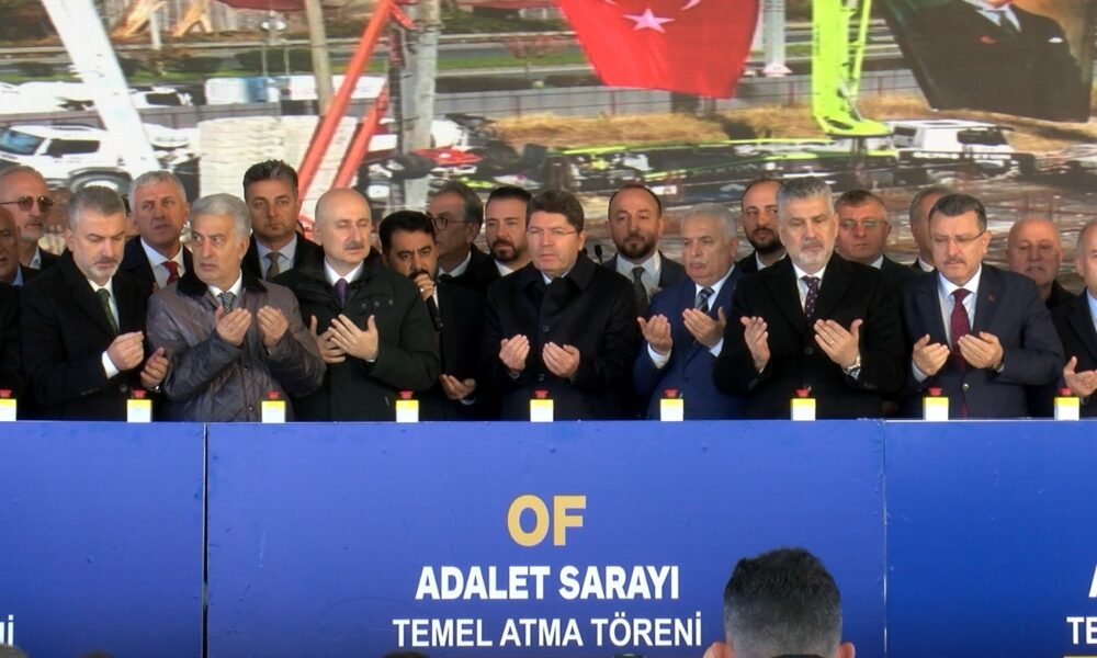 Adalet Bakanı Yılmaz Tunç, çeşitli programlar için geldiği Trabzon’da Of Adliyesinin temel atma törenine katıldı. Of ilçesinde yaklaşık 1450 metrekare kapalı alana sahip, 5 duruşma salonu, 12 hakim, 8 savcı odası, ara buluculuk merkezi ve çok sayıda idari birimin yer alacağı yeni adalet binasının temel atma töreni yapıldı. Bakan Tunç, açıklamasında, “23 yıldan bu yana Cumhurbaşkanımızın liderliğinde eğitimden, sağlığa, ulaştırmadan, her alanda ülkemizi geliştirmenin, büyütmenin ve kalkındırmanın gayreti içerisinde olduk. 23 yıldan bu yana bu milletin Recep Tayyip Erdoğan’dan vazgeçmemesinin sebebi, eser siyasetini izlemesidir. Muhalefet karalama yaparken, engelleme siyaseti izlerken Recep Tayyip Erdoğan ve onun kadroları hep eser üretmiştir, iktidarda milletin taleplerine duyarlı olmuştur, milli irade bayrağını yere düşürülmemesi için mücadele etmiştir. Dünyada mazlumun hakkını hakkaniyeti ve adaleti hep savunmuştur. Bu nedenle de milletimiz, 23 yıldan bu yana ondan hiç vazgeçmemiştir yine vazgeçmeyecektir. Biz milletimize güveniyoruz. En zor zamanlarda önümüze konulan bütün engelleri milletimizin desteğiyle aşmayı başardık yine milletimizin desteğiyle inşallah ‘Türkiye Yüzyılı’nın’ inşa sürecini hızlandırarak devam ettireceğiz” ifadelerini kullandı.