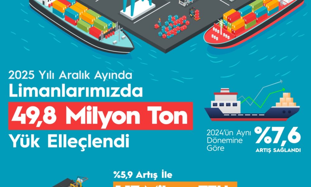 Bakan Abdulkadir Uraloğlu, yazılı açıklama ile Denizcilik Genel Müdürlüğü tarafından hazırlanan 2025 yılı Aralık ayı istatistiklerini değerlendirdi. Bakan Uraloğlu, Türkiyenin deniz ticaretinden daha fazla pay alması için çalışmalarını sürdürdüklerini ifade ederek, “Aralık ayında limanlarımızda elleçlenen yük miktarı geçen yılın aynı ayına göre yüzde 7,6 artışla 49,8 milyon ton olarak gerçekleşti. 2025 yılı Aralık ayı, tüm aylar içerisinde en yüksek elleçlemenin olduğu ay oldu. Deniz ticaretinde 2025 yılını rekorla noktaladık. Elleçlenen konteyner miktarı geçen yılın aynı ayına göre yüzde 5,9 artarak 1,17 milyon TEUya ulaştı” ifadelerini kullandı.