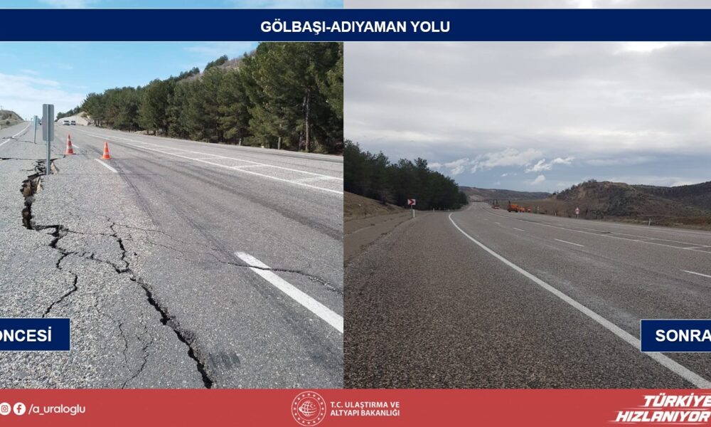 Bakan Uraloğlu, 6 Şubat depremleri sonrasında 68 bin 510 kilometrelik yol ağının 9 bin 176 kilometresinin deprem bölgesinde olduğunu ve bu kesimin sadece yüzde 2’sini oluşturan 184 kilometrelik kısımda hasar oluştuğunu söyledi. Uraloğlu, 11 ildeki yol ağının yüzde 98’inin depremden herhangi bir zarar görmediğini ifade ederek, “Depremin hemen ardından Karayolları Genel Müdürlüğümüz ile 4 bin 865 personel, 3 bin 284 makine ve teçhizatla çalışma yürüterek deprem sonrası trafikte aksamaların önlenmesi için gerekli tedbirleri aldık. Şehir içi trafiğin sağlanması ve özellikle arama kurtarma amaçlı yoğun çalışmalar yürüttük” dedi.