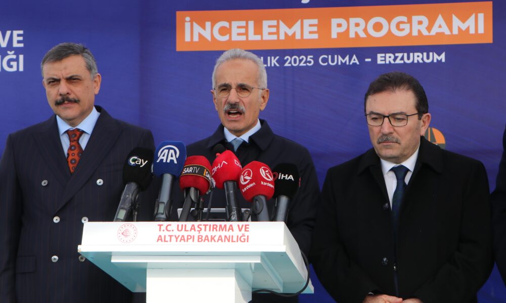Bakan Uraloğlu, Erzurum’un tüm demir yolu ağını yenilediklerini belirterek, “2018 yılında Erzurum Palandöken Lojistik merkezini açarak Erzurum sanayi ve ticaret faaliyetlerinin gücüne güç kattık. Erzurum’u hızlı tren ile tanıştıracak 379 km uzunluğundaki Erzincan-Erzurum-Kars hızlı tren hattı etüt proje çalışmalarımız da devam ediyor. Proje çalışmalarını 2026 yılında tamamlamayı hedefliyoruz. 2005 yılında Erzurum’a yakışan 2 milyon yolcu kapasiteli modern bir havalimanı inşa ettik. 2002 yılında 105 bin olan yolcu sayısı, 2024 yılında 1 milyon 180 bine çıktı. Erzurumlu vatandaşlarımızın özellikle kış şartlarında havalimanına inemeyen uçaklar nedeniyle yıllarca yaşadıkları mağduriyeti de ortadan kaldırdık. En yoğun sisli havalarda dahi uçakların iniş yapabilmesini sağlayan özel aydınlatma sistemi CAT-3 sistemini kazandırdık” diye konuştu.