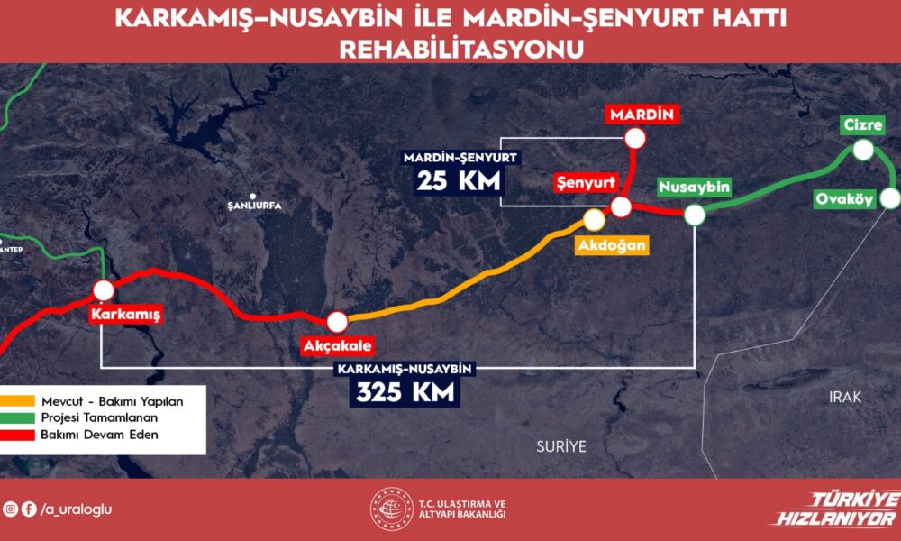 Bakan Uraloğlu, yaptığı yazılı açıklamada, “Toplam 350 kilometre uzunluğundaki hattın 325 kilometresi Karkamış-Nusaybin, 25 kilometresi ise Mardin-Şenyurt kesiminden oluşuyor. 2011-2024 yılları arasında yapılamayan tüm bakımları tamamlıyor, altyapı ve üstyapı onarımı ile sanat yapıları güçlendirme çalışmalarıyla bölgeye dönük geniş kapsamlı bir planlamayla ele alınıyor. Bölgedeki koşulların normalleşmesiyle birlikte Suriye sınırındaki bu stratejik hattı yeniden ayağa kaldırıyoruz” ifadelerini kullandı.