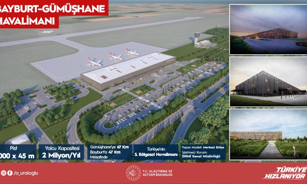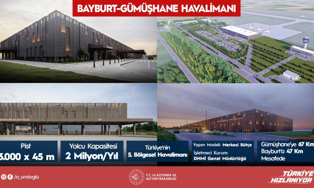 Bakan Uraloğlu, yaptığı yazılı açıklamada, Gümüşhane’ye 67 kilometre, Bayburt’a 47 kilometre mesafede, Köse-Bayburt Karayolu üzerinde inşa edilen havalimanının altyapı çalışmalarının tamamlandığını belirtti. Uraloğlu, 3 bin metre uzunluğunda ve 45 metre genişliğinde pist, 300’e 120 metre boyutlarında apron ve 265 metre uzunluğunda taksi yolunu tamamladıklarını bildirdi. Devam eden üstyapı işlerine ilişkin de açıklamada bulunan Bakan Uraloğlu, terminal binası, teknik blok ve kule binası ile tesisat işlerinde çalışmaların hızla sürdüğünü kaydetti. Bakan Uraloğlu, “Terminal binamız 17 bin metrekare alanıyla modern bir yapıya sahip olacak. Toplam kapalı alan ise 29 bin metrekareye ulaşacak. Projemiz tamamlandığında havalimanımız yılda 2 milyon yolcuya hizmet verebilecek kapasiteye ulaşacak ve Türkiye’nin 5’inci bölgesel havalimanı olacak” ifadelerini kullandı.
