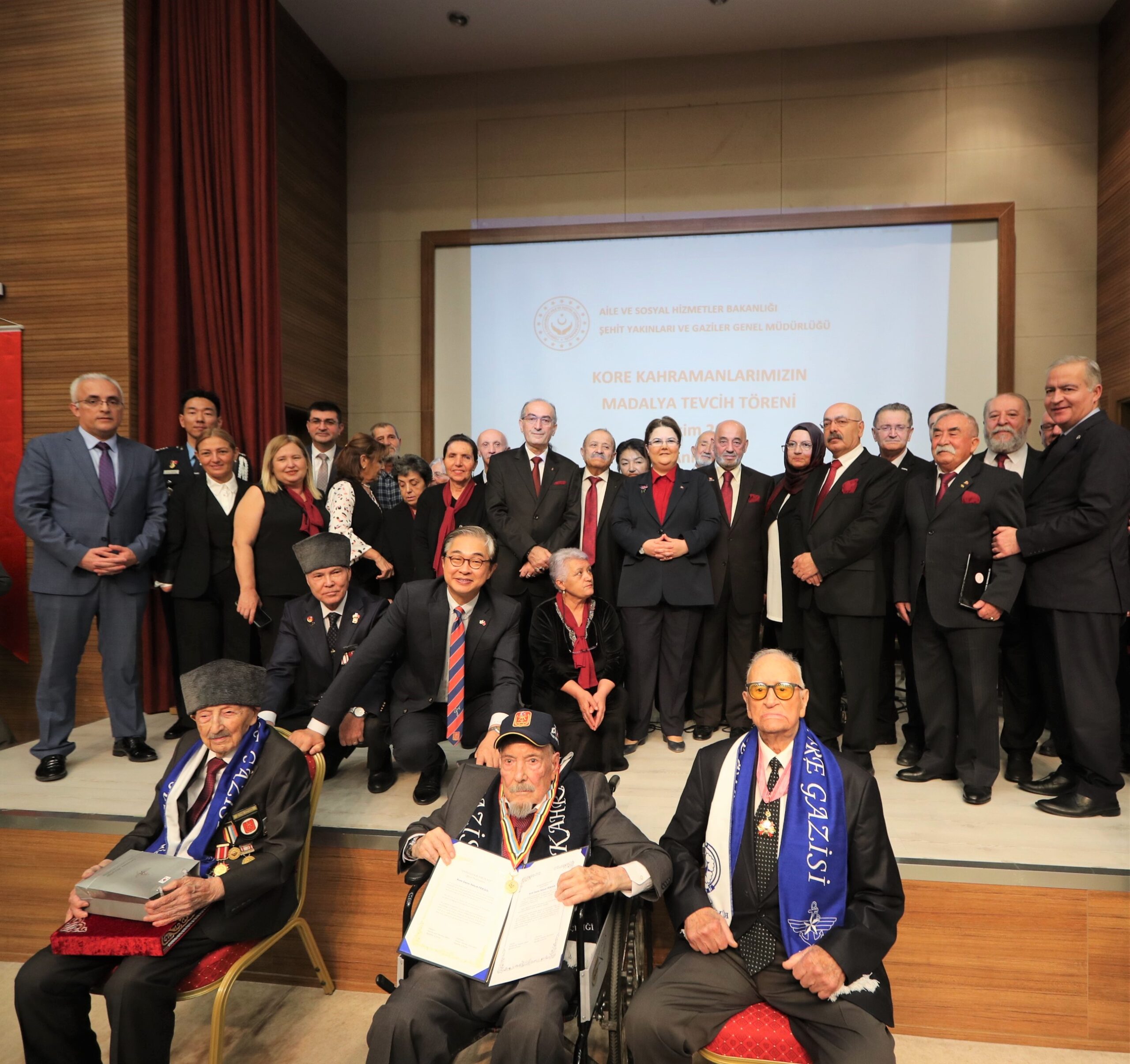 Seyranbağları Huzurevi Yaşlı ve Bakım ve Rehabilitasyon Merkezi’nde düzenlenen programa, Bakan Derya Yanık, Kore Cumhuriyeti Büyükelçisi Won Ik Lee, Kore Savaşı gazileri ve Kore Cumhuriyeti’nden askeri temsilciler katıldı. Törende Gazi Selçuk Fidegül’e, Bakan Yanık ile Büyükelçi Won Ik Lee, Kore Cumhuriyeti’nce tevcih edilen ‘Barış Madalyası’nı takdim etti. Bakan Yanık ayrıca, Kore gazisi Ali Cengiz Türkoğul’a da Kur-an’ı Kerim hediye etti.