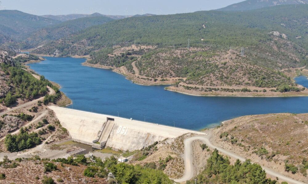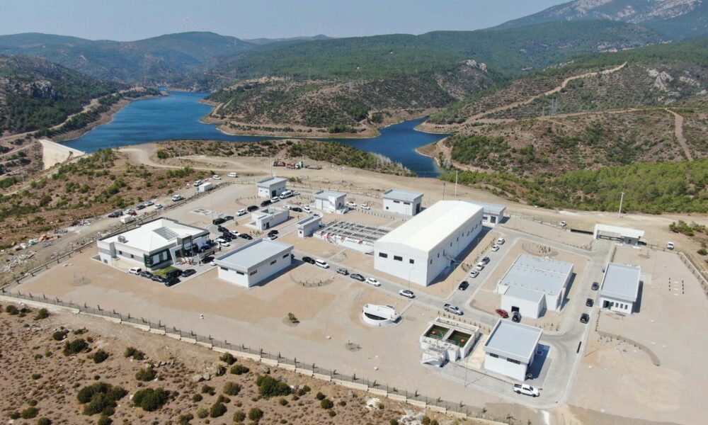 İzmir'in Çeşme ilçesine verilmek üzere Karaburun Karareis Barajı, Salman Göleti Ortak Deposu İletim Hattı ve İçme Suyu ilk su verilmesi programı düzenlendi. Fotoğraf: Yağmur ÖNGÜN/İzmir,(DHA)