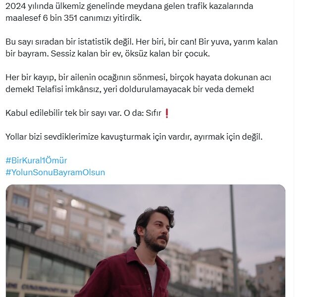 Bakan Yerlikaya paylaşımında bu soruyu tekrarlayarak “2024 yılında ülkemiz genelinde meydana gelen trafik kazalarında maalesef 6 bin 351 canımızı yitirdik. Bu sayı sıradan bir istatistik değil. Her biri, bir can! Bir yuva, yarım kalan bir bayram. Sessiz kalan bir ev, öksüz kalan bir çocuk. Her bir kayıp, bir ailenin ocağının sönmesi, birçok hayata dokunan acı demek! Telafisi imkânsız, yeri doldurulamayacak bir veda demek. Kabul edilebilir tek bir sayı var. O da sıfır. Yollar bizi sevdiklerimize kavuşturmak için vardır, ayırmak için değil” ifadelerine yer verdi.