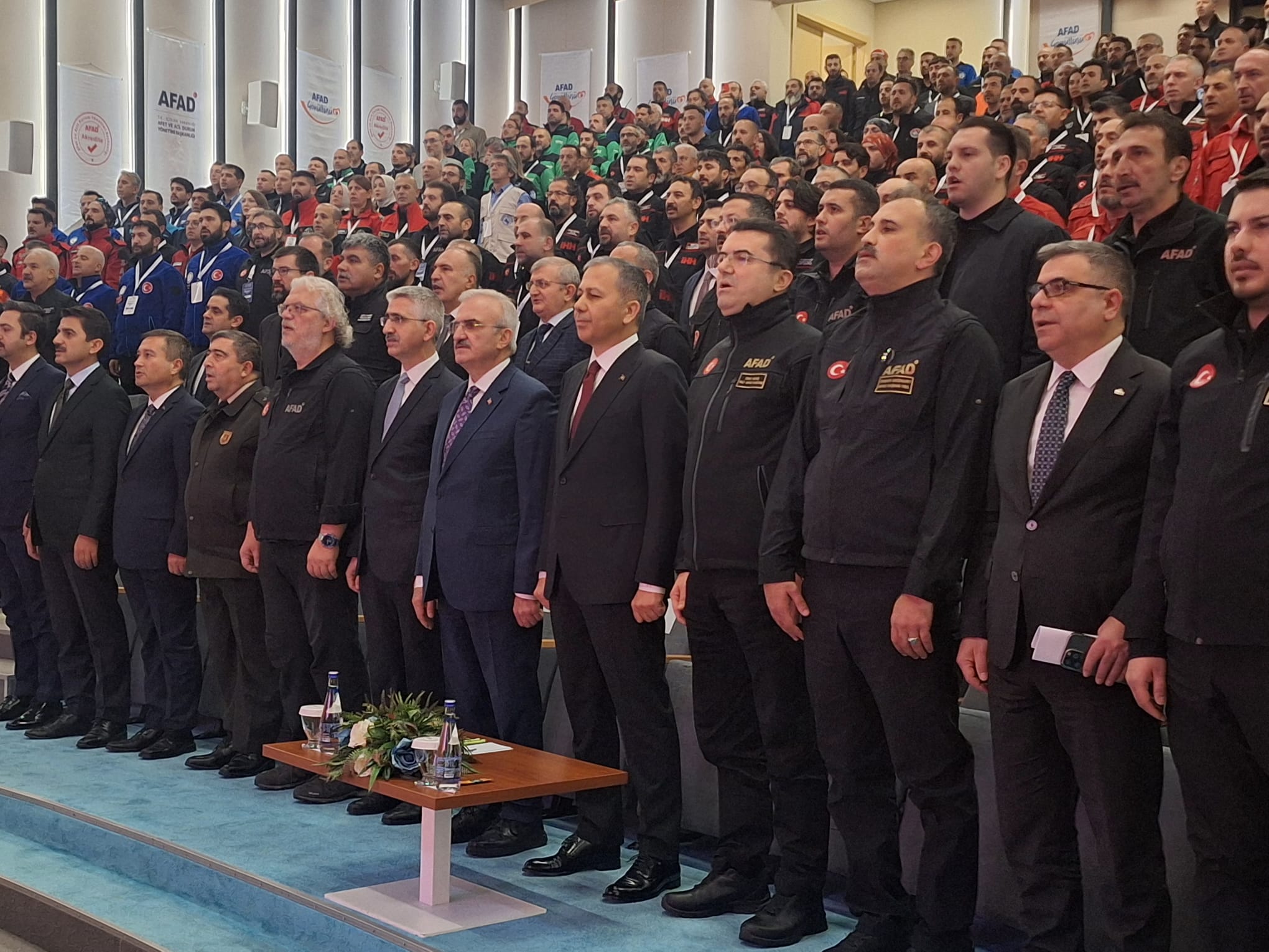 Zor günlerde gösterilen azim ve cesaretin daima gururla anılacağını vurgulayan Yerlikaya, “Cumhurbaşkanımız Sayın Recep Tayyip Erdoğan’ın liderliğinde Türkiye, afet yönetiminde ve dayanışma ruhunun kurumsallaşmasında büyük adımlar attı. 2009 yılında afet ve acil durumlara ilişkin tek yetkili kurum olan AFADın kurulması; kriz yönetimiyle birlikte risk yönetimi anlayışına geçilmesi, afetlere hazırlıkta bizim için milat oldu. Türkiye Afet Müdahale Planı çerçevesinde, AFAD Akreditasyon Sistemi ile sivil toplum kuruluşları, kamu ve özel sektör kuruluşlarıyla gönüllü bireylerin afet sahasında etkin görev almasını teşvik ettik. Bugün arma takacak ve akreditasyon sertifikası alacak; 257 ekip ve 7 bin 972 üye ile toplamda 300 ekip ve 9 bin 101 üyeye ulaştık. Akreditasyon sistemimizi başlangıçta yalnızca kentsel arama kurtarma üzerine kurmuşken bugün akreditasyon sistemimizi Aile ve Sosyal Hizmetler Bakanlığımız ve Kızılayımızın da katkılarıyla beslenme ve psikososyal destek gibi 6 farklı alana yayarak güçlendirdik. İnceleme süreci devam eden 125 ekip ve 4 bin 32 kişilik yeni başvuruların da sisteme dahil edilmesiyle gücümüzü daha da artırıyoruz. 6 Şubat öncesi 623 bin olan AFAD gönüllü sayımız, bugün 1 milyon 545 bine yükseldi. Yine AFAD Başkanlığımız tarafından afetlere karşı hazırlıklı olunması amacıyla 1 milyon 800 bini aşkın aileye afete hazır aile eğitimleri, 3 milyonu aşkın öğrenciye okullarda afet farkındalık eğitimi verildi” dedi.
