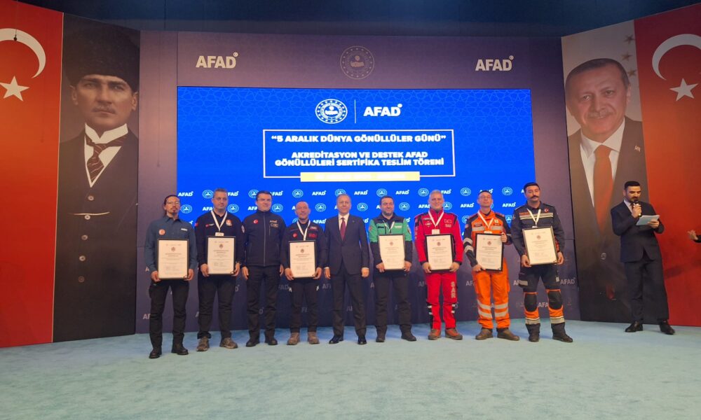 Afet ve Acil Durum Yönetimi Başkanlığı (AFAD) tarafından 5 Aralık Dünya Gönüllüler Günü nedeniyle başkanlık binasında Akreditasyon Arma ve Sertifika Teslim Töreni düzenlendi. Törene, İçişleri Bakanı Ali Yerlikayanın yanı sıra AFAD Başkanı Yunus Okay Memiş, AFAD gönüllüleri ve sivil toplum kuruluşlarının (STK) temsilcileri katıldı. Bakan Yerlikaya, zor zamanlarda fedakarlık gösteren AFAD gönüllülerine teşekkür ederek, “Gönüllülük, insanın varlığını anlamlı kılan, ahlakla yoğrulmuş kutsal bir değerdir. İnsanın, insan olma vasfını en yüksek düzeyde ortaya koyduğu bir eylemdir. Sizler, fütüvvet ruhunu ayakta tutan adanmışlarsınız. Bu ruh, medeniyetimizin en kadim değerlerinden biridir. Hiçbir maddi karşılık beklemeksizin insanların derdiyle dertlenmek, toplum yararına çalışmak, insanlara umut olmak, iyiliklere yol açmak; evet gönüllülük; salgında, selde, depremde, aşkla, erinmeden koşturmak, insan olmanın onuruna erişmek demektir” dedi.