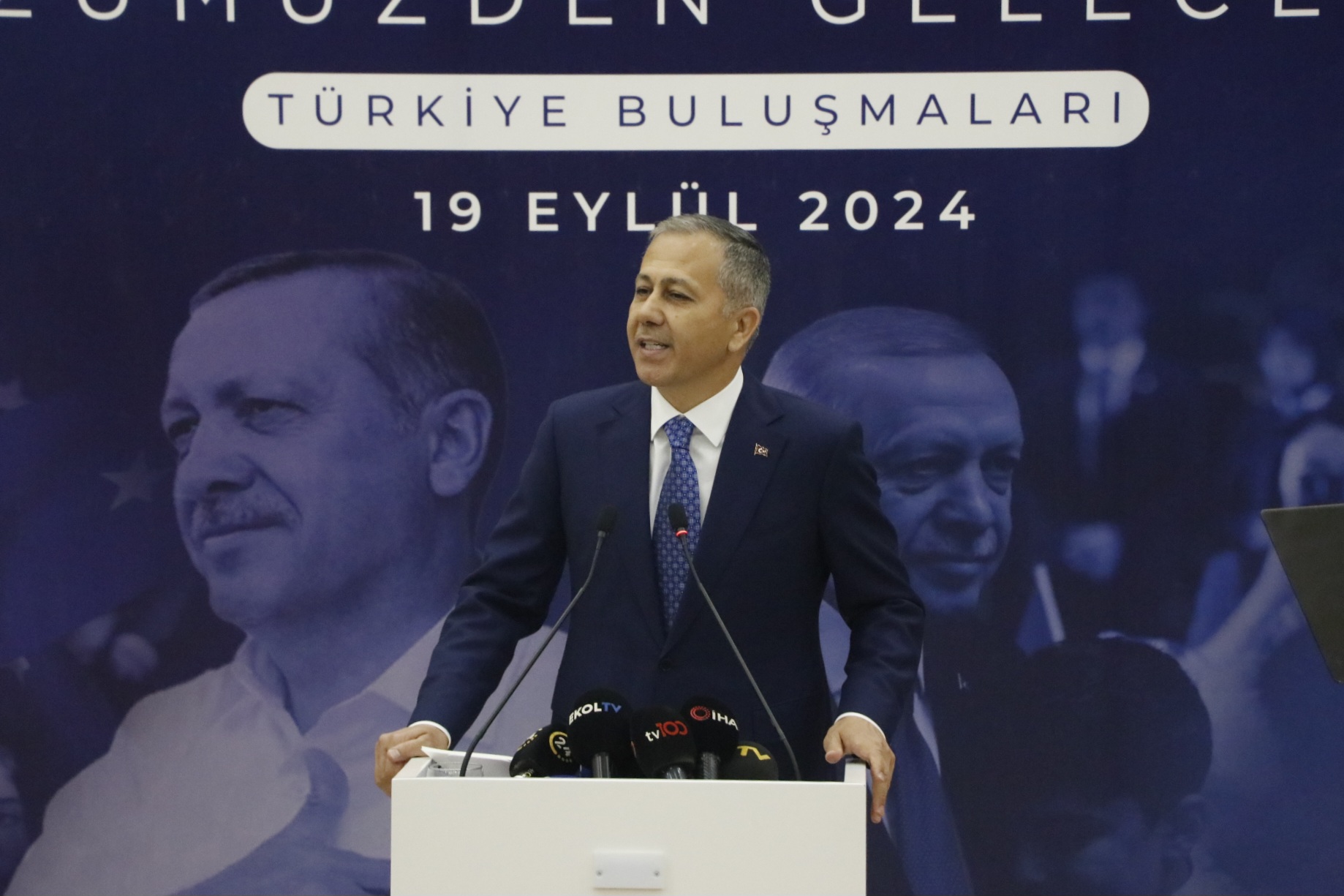 İçişleri Bakanı Ali Yerlikaya, bir dizi program ve ziyaret için geldiği Diyarbakır’da AK Parti İl Başkanlığının düzenlediği ‘Türkiye Buluşmaları’ programına katıldı. DSİ Toplantı Salonundaki programda AK Parti Diyarbakır milletvekilleri Suna Kepolu Ataman ve Mehmet Sait Yaz, AK Parti Diyarbakır İl Başkanı Mehmet Raşit Ocak ile vatandaşlar yer aldı.