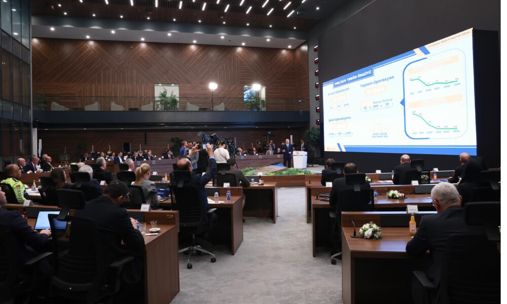 İçişleri Bakanı Ali Yerlikaya, Ankara'da medya kuruluşlarının temsilcileriyle bir araya geldiği toplantıda 1 yıllık görev süresinde yapılan çalışmaları paylaştı. Fotoğraf: Ankara, (DHA)
