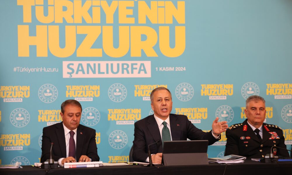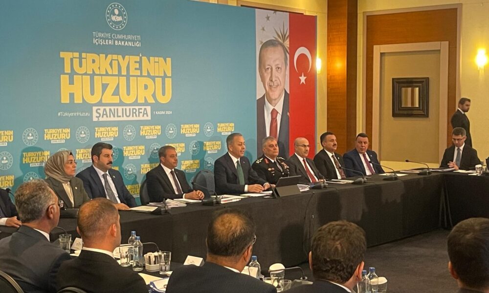 İçişleri Bakanı Ali Yerlikaya, sabah saatlerinde geldiği Şanlıurfada düzenlenen güvenlik ve asayiş toplantısına katıldı. Kentteki bir otelde düzenlenen toplantıya Bakan Yerlikayanın yanı sıra Jandarma Genel Komutanı Orgeneral Ali Çardakçı, Emniyet Genel Müdürü Mahmut Demirtaş, Şanlıurfa Valisi Hasan Şıldak, İl Emniyet Müdürü Erdem Bildirici, İl Jandarma Komutanı Tuğgeneral Mücahit Avkıran ile milletvekilleri katıldı.