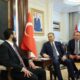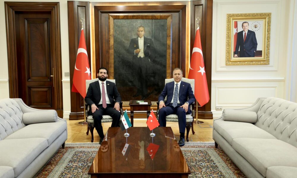 İçişleri Bakanı Ali Yerlikaya, sosyal medya hesabından yaptığı açıklamada, “Suriye İçişleri Bakanı Sayın Enes Hattab ve beraberindeki heyeti bakanlığımızda misafir ettik. Sayın Bakan ile bakanlıklarımız arasında başta güvenlik alanı olmak üzere iş birliği imkanları, Suriye İçişleri Bakanlığı güvenlik ve bağlı birimlerine gerekli desteğin sağlanması, tecrübe paylaşımı ve yoğunlaştırılmış eğitim programının verilmesi, ülkemizde geçici koruma altında bulunan Suriyelilerin ülkelerine dönmeleri ile ilgili iş birliği yapılması konularında değerlendirmelerde bulunduk. Sayın mevkidaşım ve kıymetli heyetine ziyaretleri için teşekkür ediyorum” dedi.