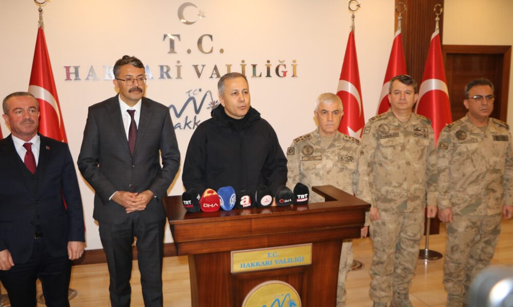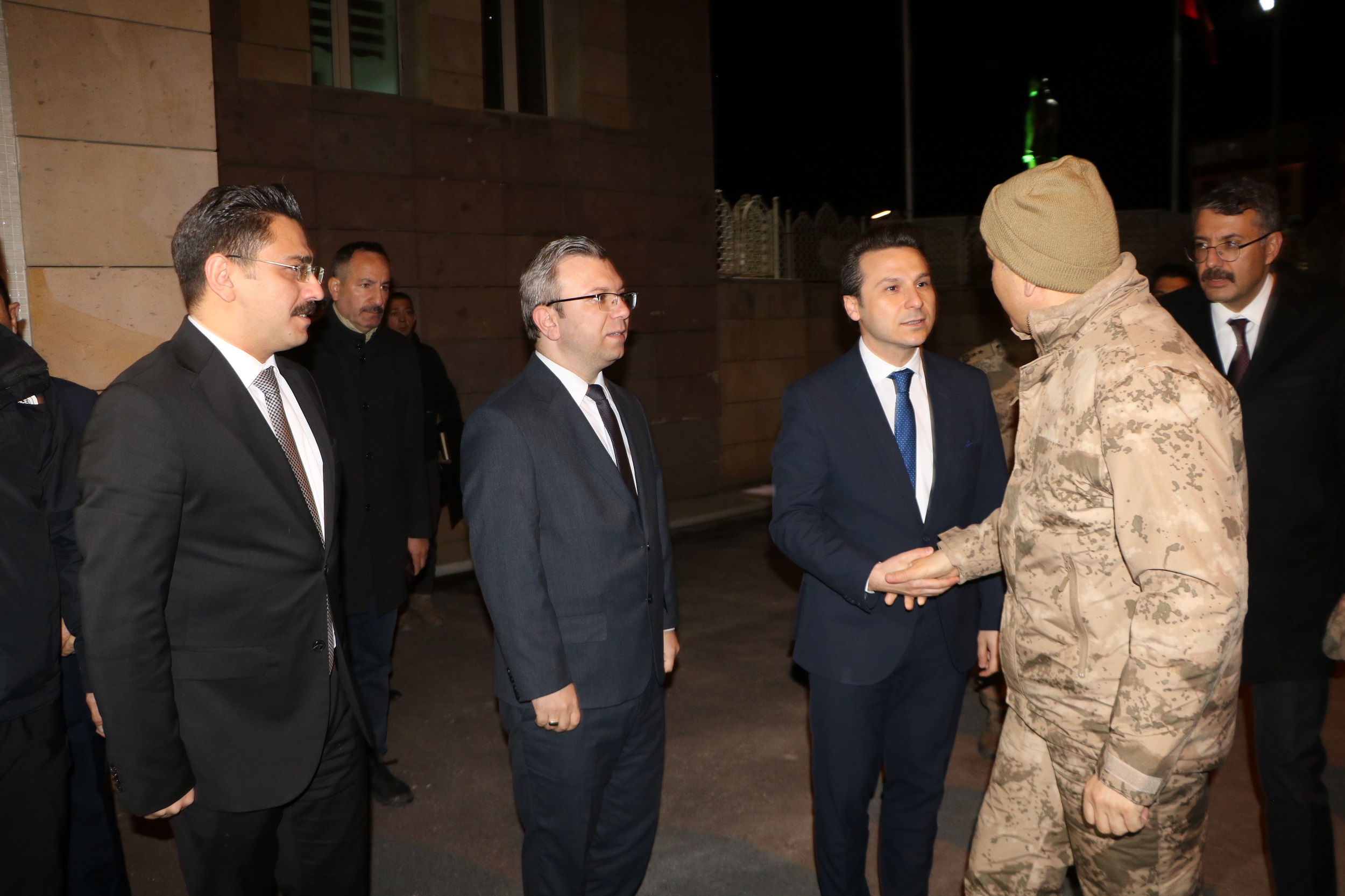 İÇİŞLERİ Bakanı Ali Yerlikaya, Hakkarinin Yüksekova ilçesine bağlı Koçtepe Askeri Üs belgesinde vatan nöbeti tutan askerlerle iftar yaptıktan sonra helikopterle kent merkezine geldi. Hakkari Valiliğini ziyaret eden Bakan Yerlikaya, Cuma günü Cumhurbaşkanı Recep Tayyip Erdoğanın Hakkariye geleceğini bildirdi.İçişleri Bakanı Ali Yerlikaya, incelemelerde bulunmak üzere akşam saatlerinde Yüksekovaya geldi. Beraberinde Jandarma Genel Komutanı Orgeneral Arif Çetin ile kente gelen Bakan Yerlikayayı, Selahattin Eyyübi Havalimanında Vali ve Belediye Başkan Vekili Ali Çelik, Yüksekova Kaymakamı ve Belediye Başkan Vekili Ömer Çimşit , 3’üncü Piyade Tümen Komutanı Tümgeneral Mehmet Yasin Kalın, İl Jandarma Komutanı Tuğgeneral Necip Çarıkcıoğlu, İl Emniyet Müdürü İdris Yılmaz ve AK Parti İl Başkanı Av. Zeydin Kaya tarafından karşılandı. Helikopterle ilçeye bağlı Koçtepe Jandarma Askeri Üs bölgesine giden Bakan Yerlikaya, burada vatan görevi yapan askerlerle iftar yaptı. Daha sonra Hakkari Merkeze geçen Yerlikaya, valiliği ziyaret etti. Kurum amirleri tarafından karşılanan Yerlikaya, Valilik şeref defterini imzaladı. Vali Ali Çelikten bilgi alan Bakan Yerlikaya, 2 bin 945 rakımlı Koçtepe Jandarma Askeri Üs bölgesini ziyaret ettiğini belirterek, “Oldukça stratejik bir yerde. Burada tüm geçiş güzergahlarının tamamını kontrol altına alıyoruz. İçinde yerli ve milli öyle bir teknolojimiz var. Terörle mücadeledeki duruşumuzu, kararlılığımızı, onların nefesini kesmekle ilgili Sayın Cumhurbaşkanımızın liderliğinde bu gelmiş olduğunuz noktayı, bu üs bölgemizde de görüyoruz. Bugün üs bölgesinde iftarımızı açtıktan sonra Sayın Cumhurbaşkanımıza telefonda burada olduğumuzu arz ettik. Oradaki jandarmamızın, Mehmetçiğimizin iftar sevincine ortak olduk. Sayın Cumhurbaşkanımızın bu cuma Hakkârili hemşerilerimizle, kardeşlerimizle buluşacağını ve bir miting yapacağını öğrenmiş olduk. Bunu da Hakkarili hemşerilerimize iletmek istiyoruz. Kara vatandan, deniz vatandan, siber vatandan suç türlerinin hangisi olursa olsun, evet önceliğimiz bölücü terör örgütü ve terör örgütlerinin her birinin tamamın topraklarımızdan kazımakla ilgili son terörist etkisiz hale getirilinceye kadarki kararlılığımız devam ediyor.” dedi.Bakan Yerlikaya, açıklamanın ardından AK Parti seçim bürosunu ziyaret edip, partililerle bir araya geldi. Yerlikaya, yol üzerindeki esnafı da ziyaret edip, sohbet etti. Özel Hareket Şubesini ziyaret eden Bakan Yerlikaya, daha sonra kentten ayrıldı.